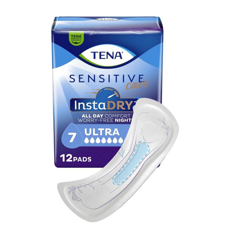 Tena Sensitive Care Ultra InstaDry Pads for Women - Postpartum and Bladder Leaks - Ultra Absorbency - 12ct