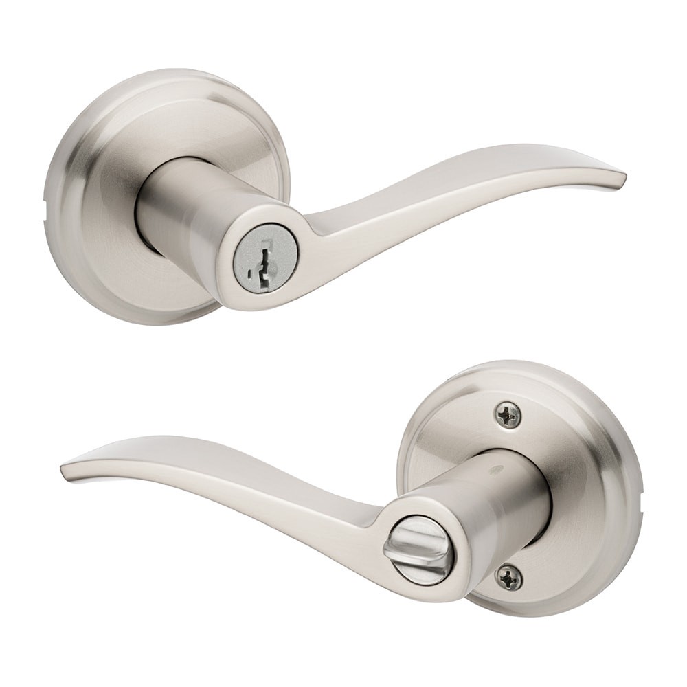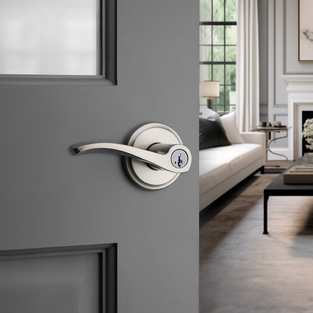 Kwikset Signature Series Sedona Satin Nickel Interior or Exterior Keyed Entry Door Handle ft. SmartKey Security