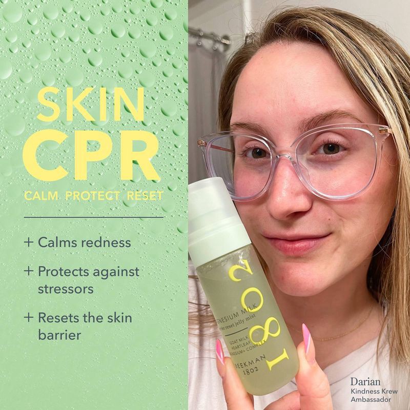 Beekman 1802 Magnesium Milk Barrier Rest Jelly Mist is a clean, clinically proven formula that instantly calms skin redness, irritation, and stress—without disrupting the microbiome. Powered by our si…