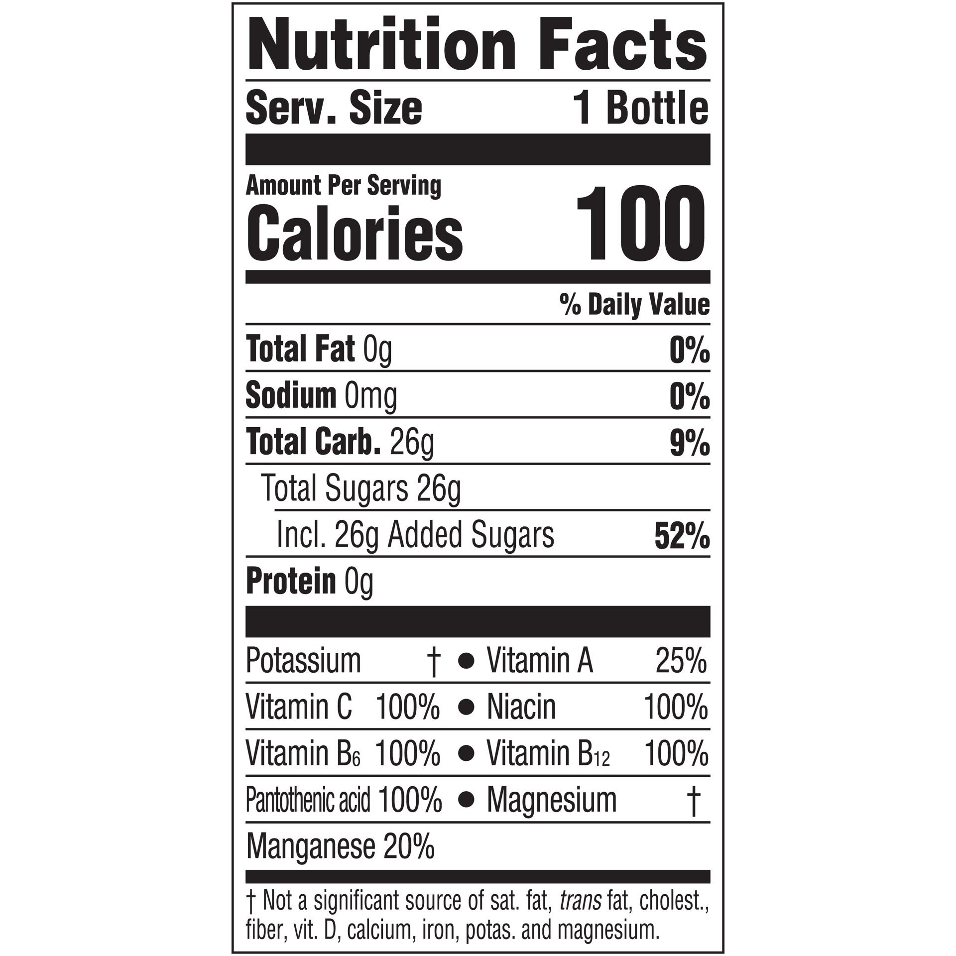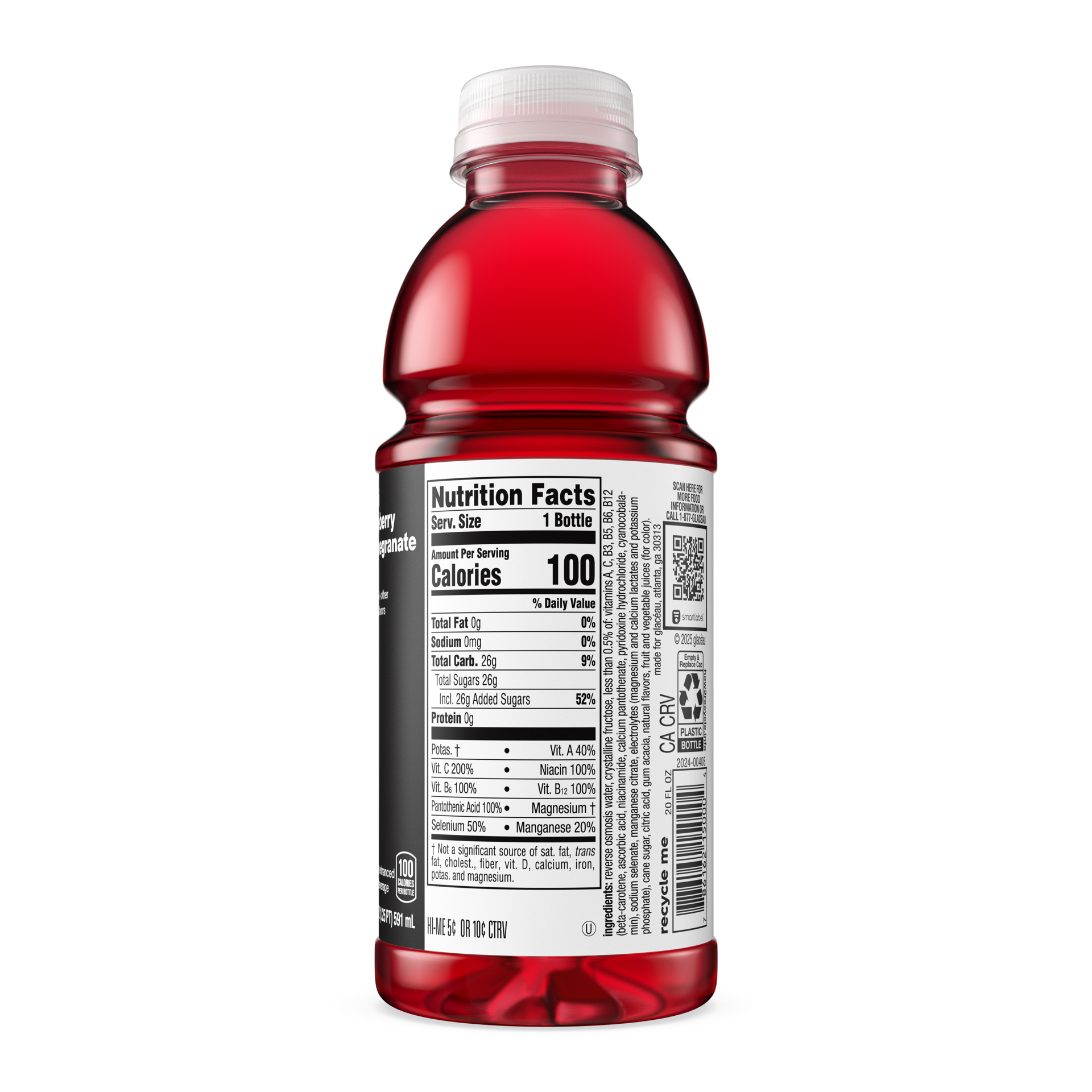 Reverse Osmosis Water, Crystalline Fructose, Less than 0.5% of: Vitamins A, C, B3, B5, B6, B12 (Beta-Carotene, Ascorbic Acid, Niacinamide, Calcium Pantothenate, Pyridoxine Hydrochloride, Cyanocobala-M…