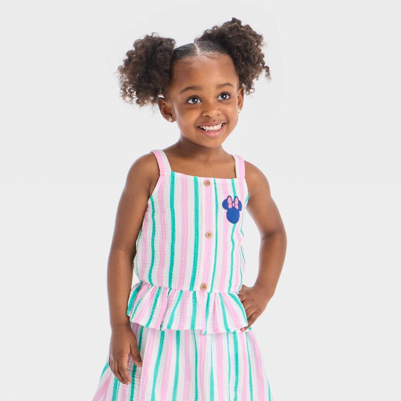 Get your tiny tot ready for fun outings in cute style with this 2-Piece Disney Minnie Mouse Sporty Tank Top and Skort Set. The Minnie Mouse outfit set includes a peplum tank top with a Minnie face sil…