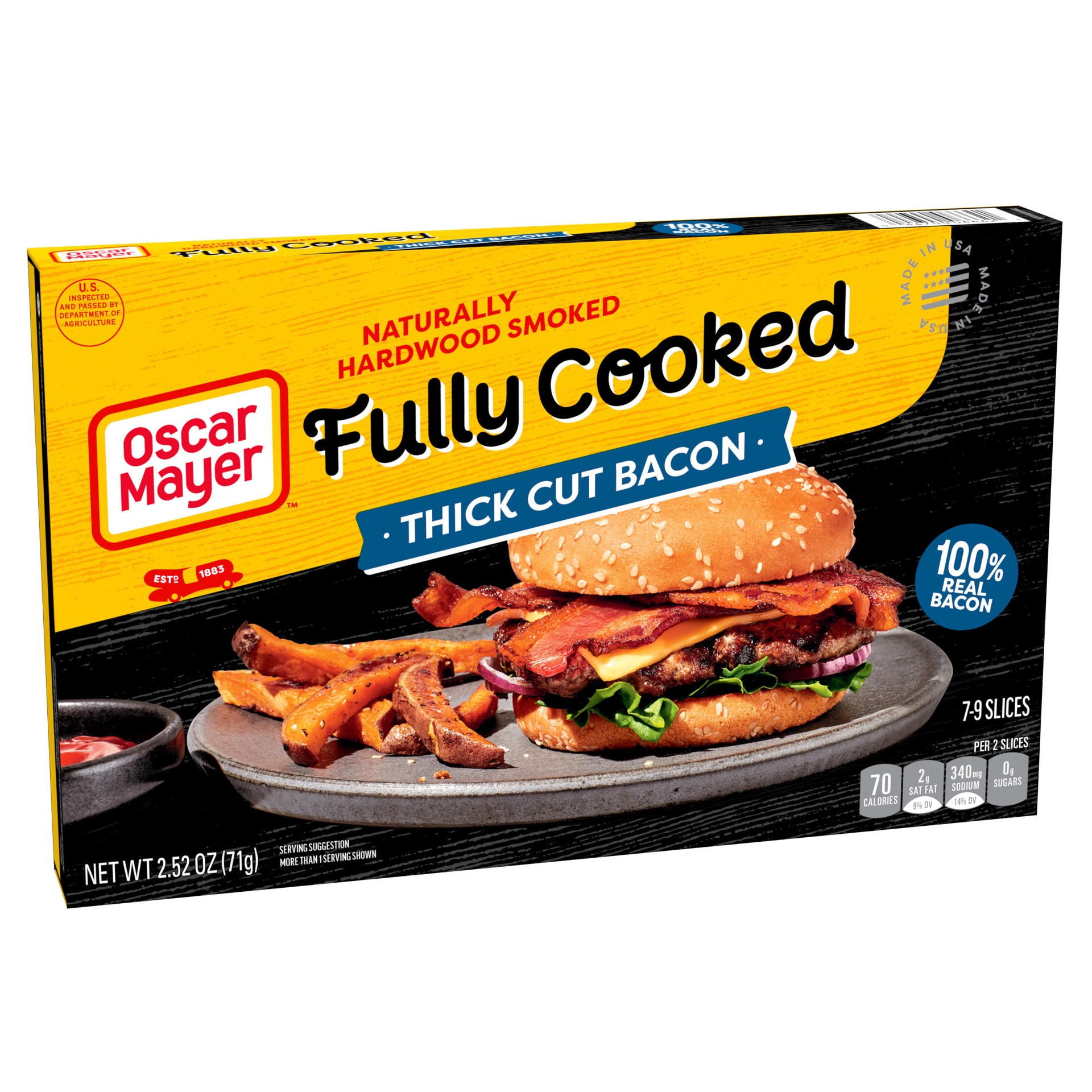 Everything is better with bacon. Oscar Mayer Naturally Hardwood Smoked Fully Cooked Thick Cut Bacon Slices make it easy to add the delicious flavor of smoked bacon to any dish. Made from pork, our preā¦