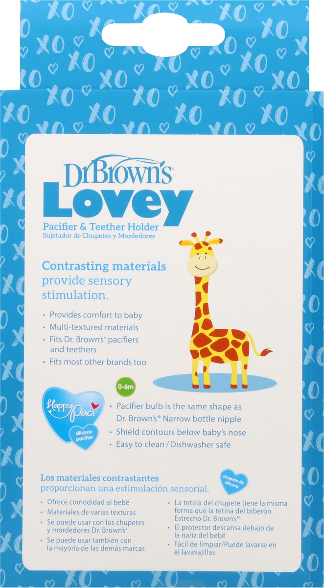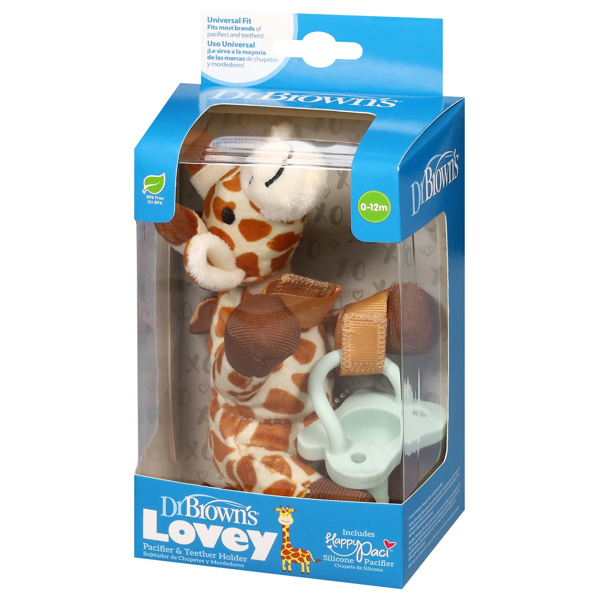 Comfortably soft, plush giraffe animal fits Dr. Brown’s pacifiers and teethers and most other brands, too. Lovey:Provides comfort to babyFeatures multi-textured materialsIncludes a durable snap that s…