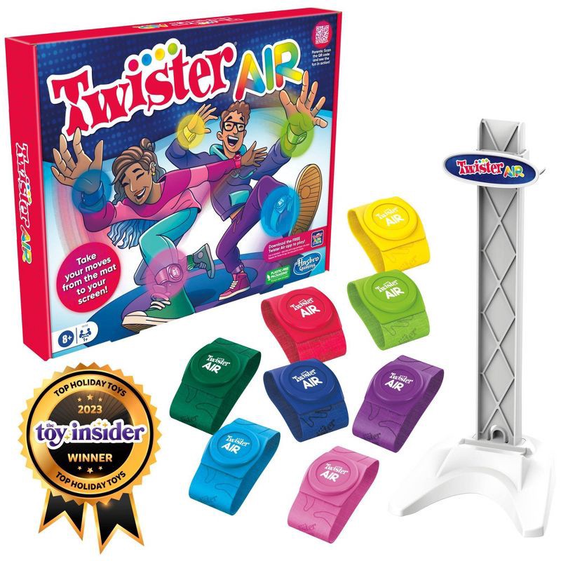 Take moves from the mat to the screen with the Twister Air game! No mat? That's right! In this app-enabled Twister game, the party moves onto a player's smart device. This fun party game includes 8 co…
