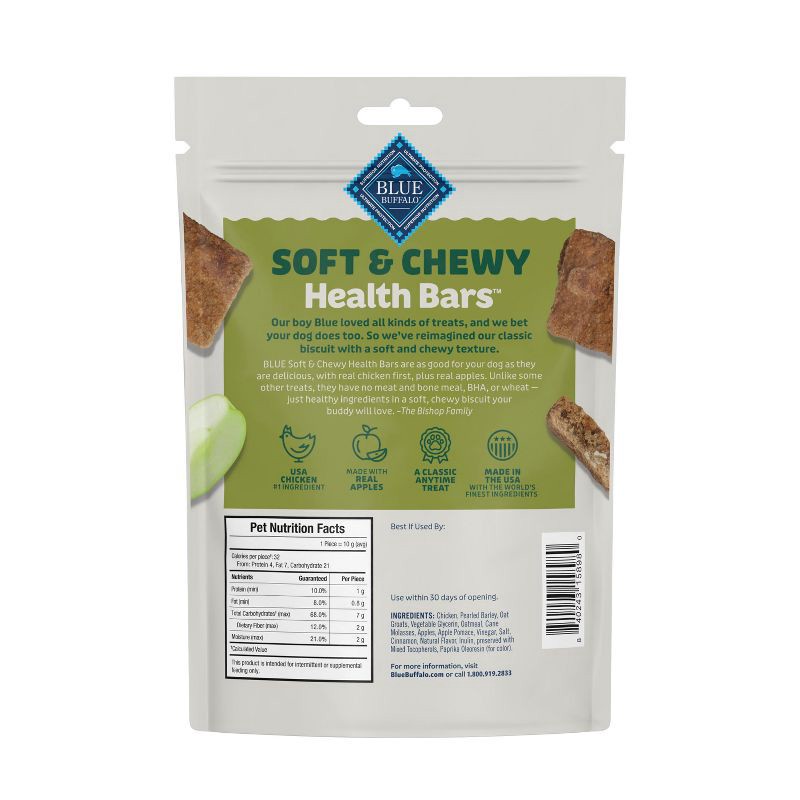 - INCLUDED IN PACKAGE: Contains one (1) 9 oz. bag of BLUE Soft & Chewy Health Bars Baked with Real Chicken & Apples
