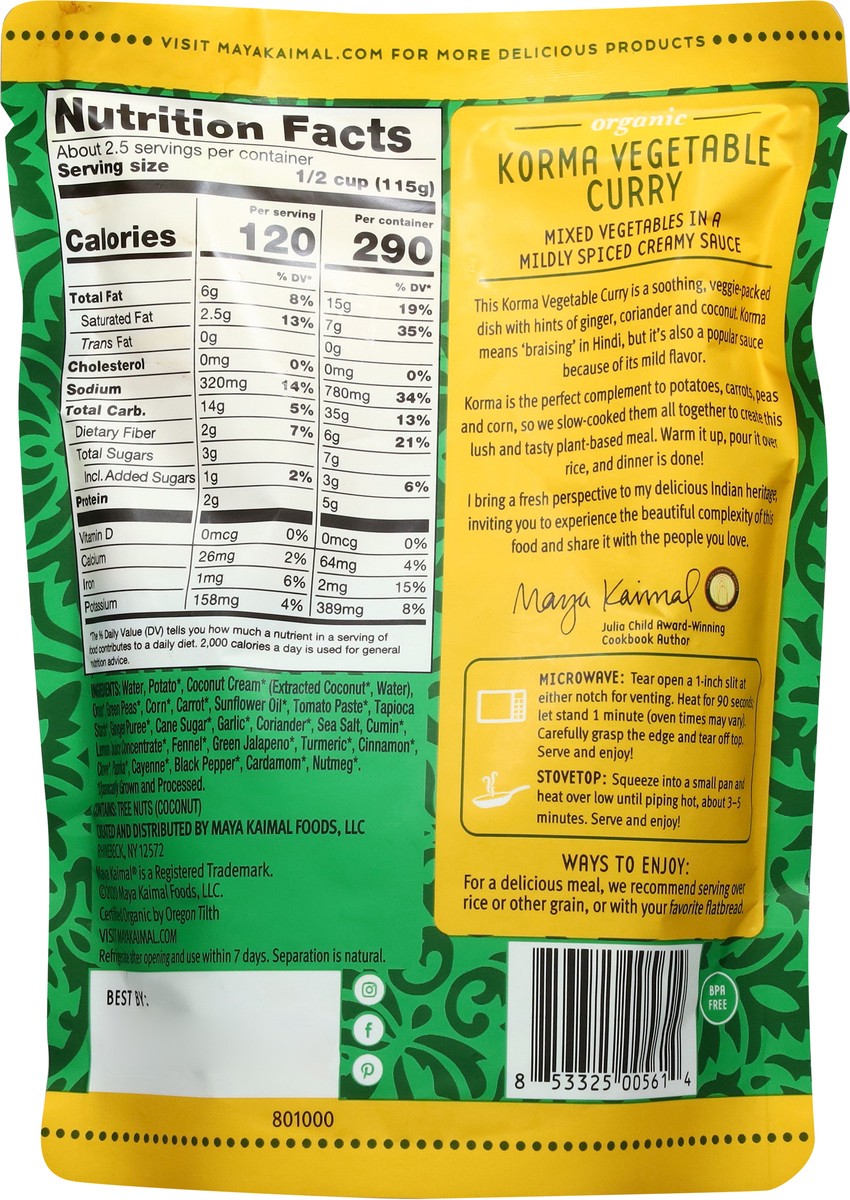 Maya Kaimal Organic Mild Korma Vegetable Curry 10 oz