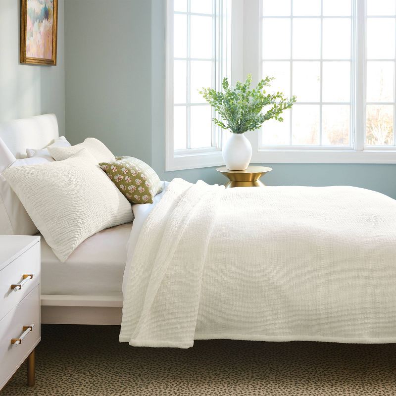 Create a relaxing getaway in seconds with this Matelassé Gauze Quilt from Threshold™. In a solid hue that easily coordinates with a variety of decor styles, this gauze quilt features a soft matelassé …