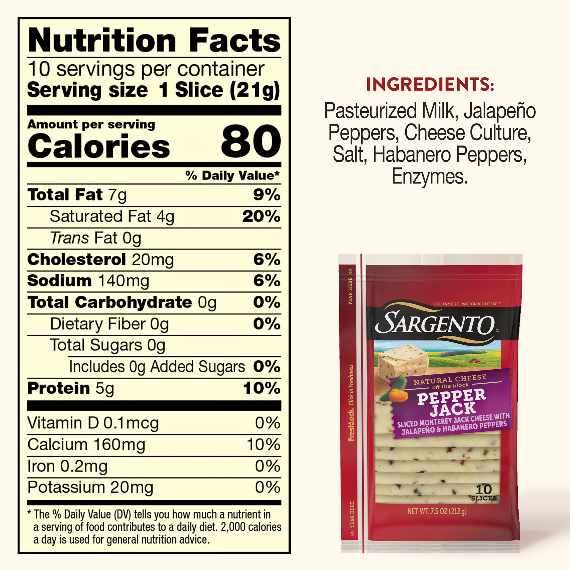 Sargento Sliced Pepper Jack Natural Cheese - 10 Count