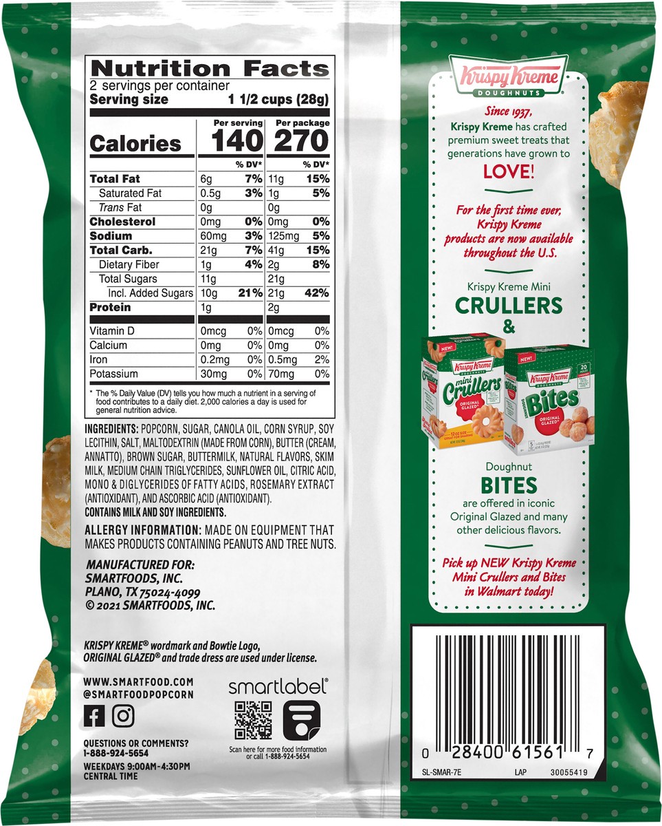 Popcorn, Sugar, Canola Oil, Corn Syrup, Soy Lecithin, Salt, Maltodextrin (Made from Corn), Butter (Cream, Annatto), Brown Sugar, Buttermilk, Natural Flavors, Skim Milk, Medium Chain Triglycerides, Sun…