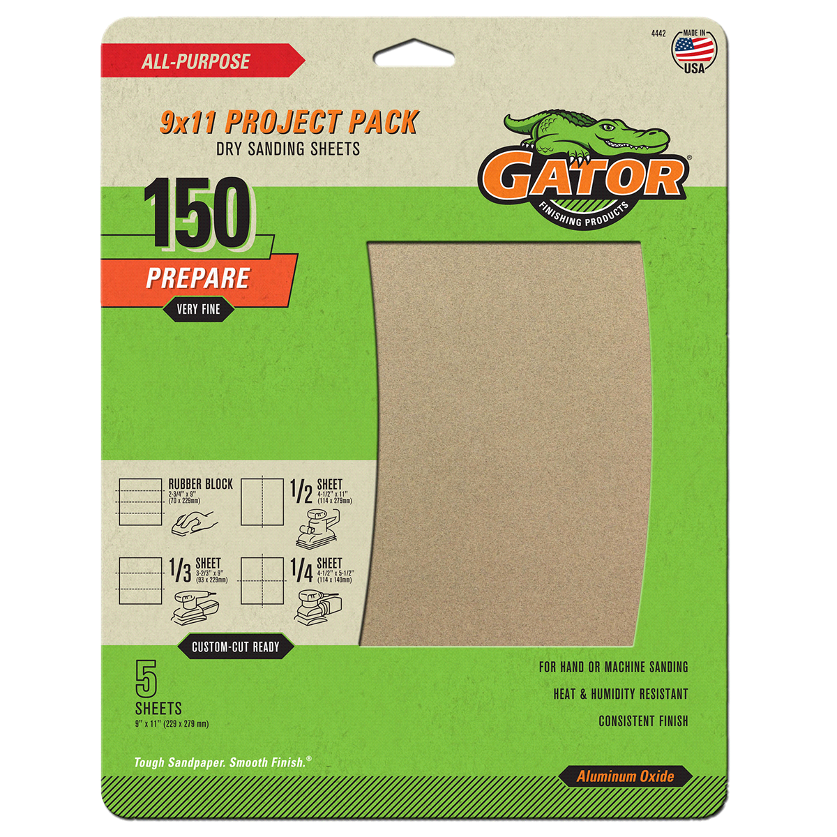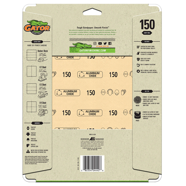 Multipurpose aluminum oxide sandpaper provides excellent performance at a value price. These sheets are ideal for both hand and power tool sanding on wood, metal, fiberglass and painted surfaces. Alum…