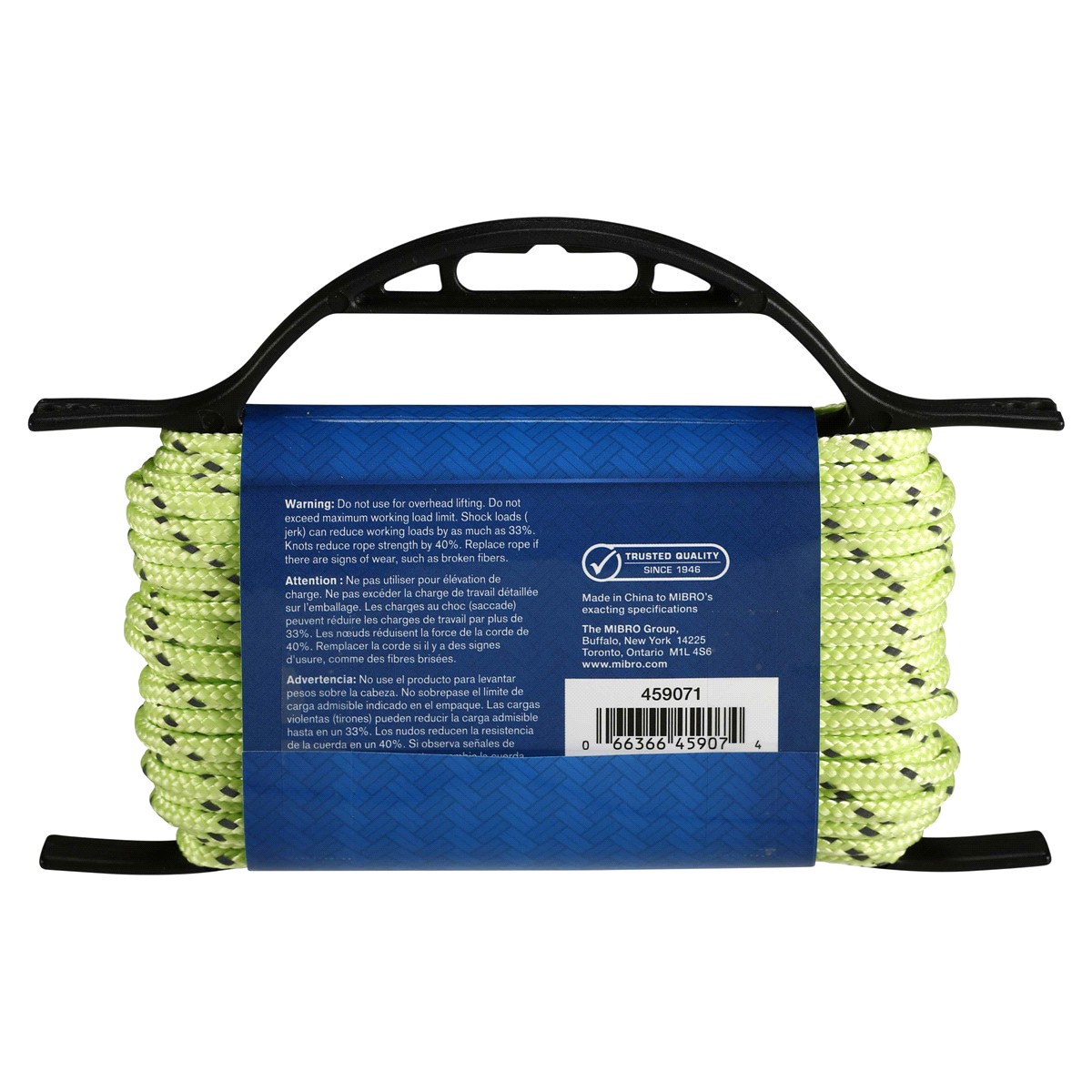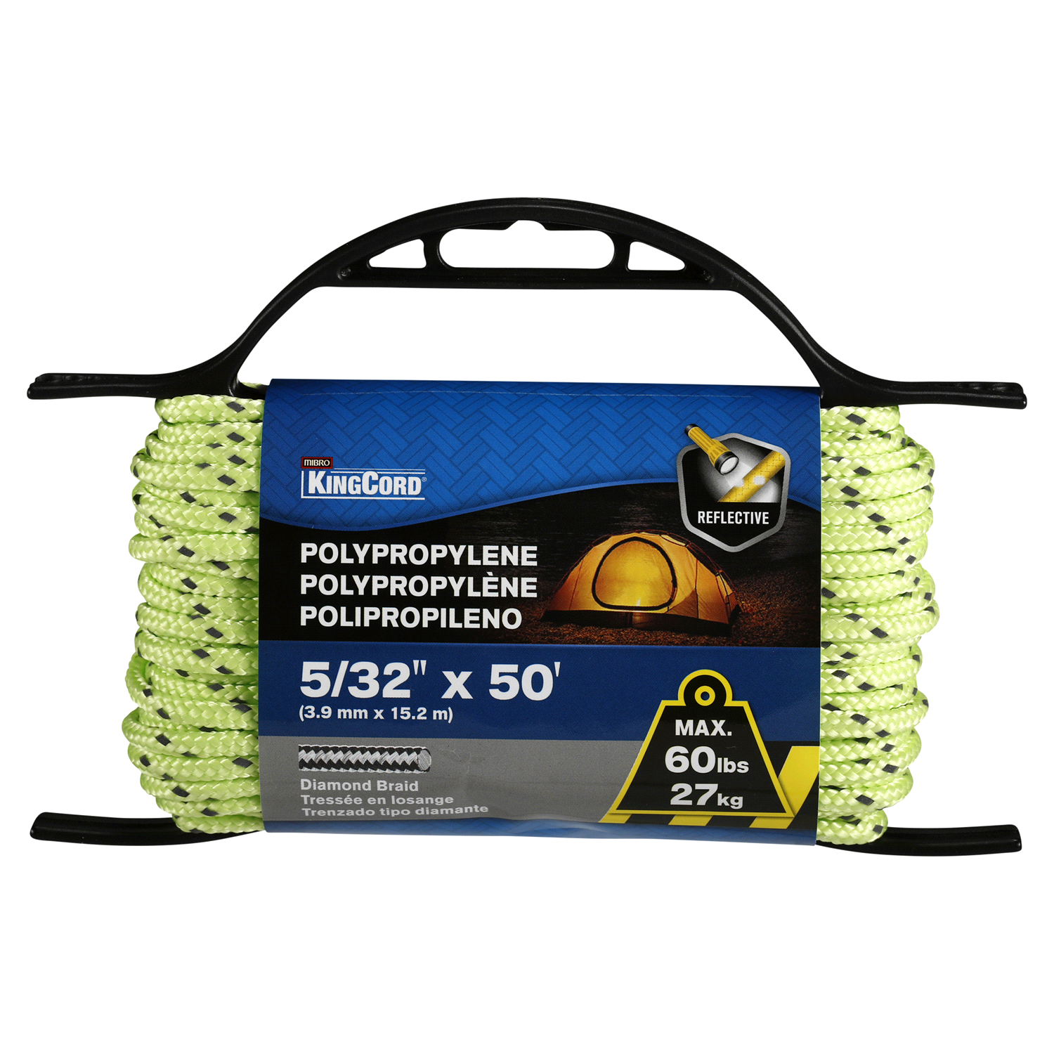 KingCord 5/32 x 50' Reflective Diamond Braid Polypropylene Rope and Rope Holder, Yellow