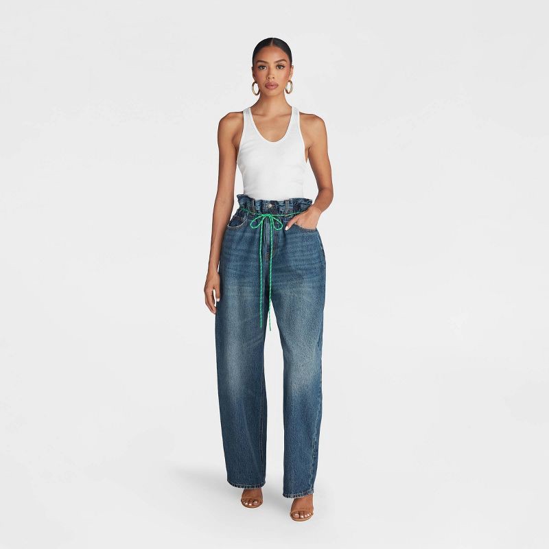 KBB by KAHLANA Women's Barrel Leg 'The Paper Bag Jean' - Dark Wash 00