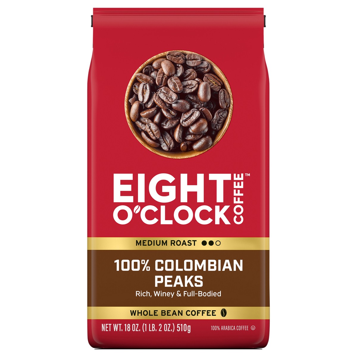 Eight O'Clock Coffee 100% Colombian Peaks Whole Bean Coffee 18 oz