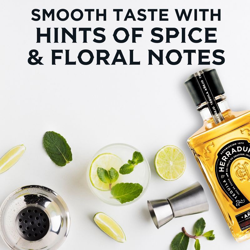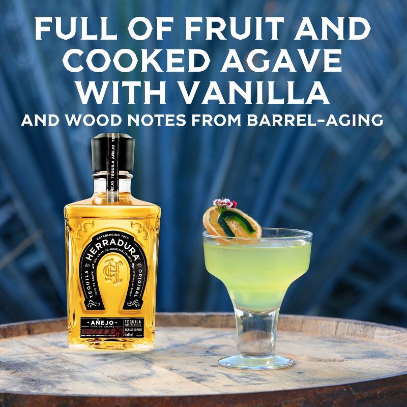 - One 750 mL bottle of Tequila Herradura AñejoFeatures a dark amber color, aromas of cooked agave with spice and floral notes, and a creamy finishTequila liquor aged to perfection for 25 months in American white oak barrels, which is 13 months beyond the industry standardsPerfect for sipping neat, on the rocks, in a cocktail, or in deliciously mixed alcohol drinksTequila Herradura Anejo is the winner of 53 awards since 2006, including 18 golds