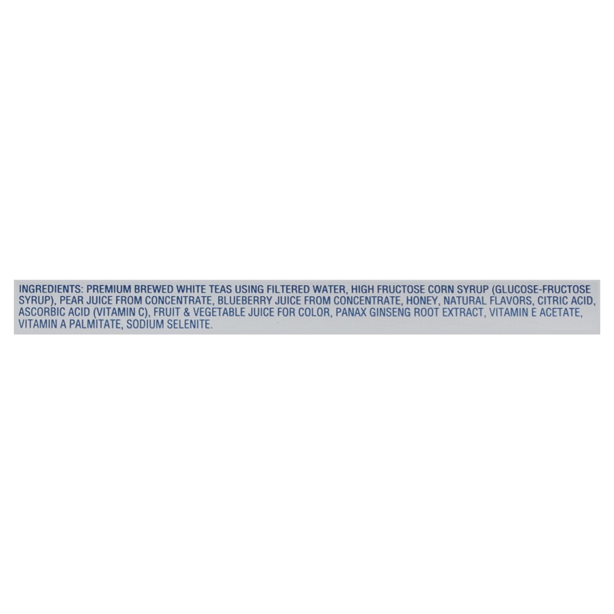 Premium Brewed White Teas Using Filtered Water, High Fructose Corn Syrup (Glucose-Fructose Syrup), Pear Juice from Concentrate, Blueberry Juice from Concentrate, Honey, Natural Flavors, Citric Acid, A…
