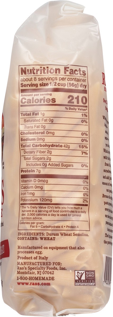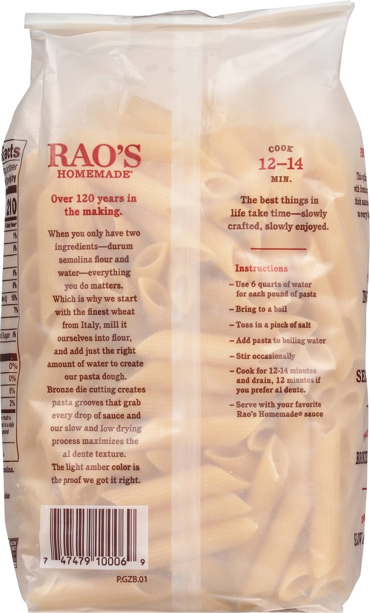 Bring home the famous taste of Raos Homemade pastas! Our delicious Penne is imported from Italy to bring the flavor of Italy right to your table. Our pasta is made from house-milled durum semolina flo…