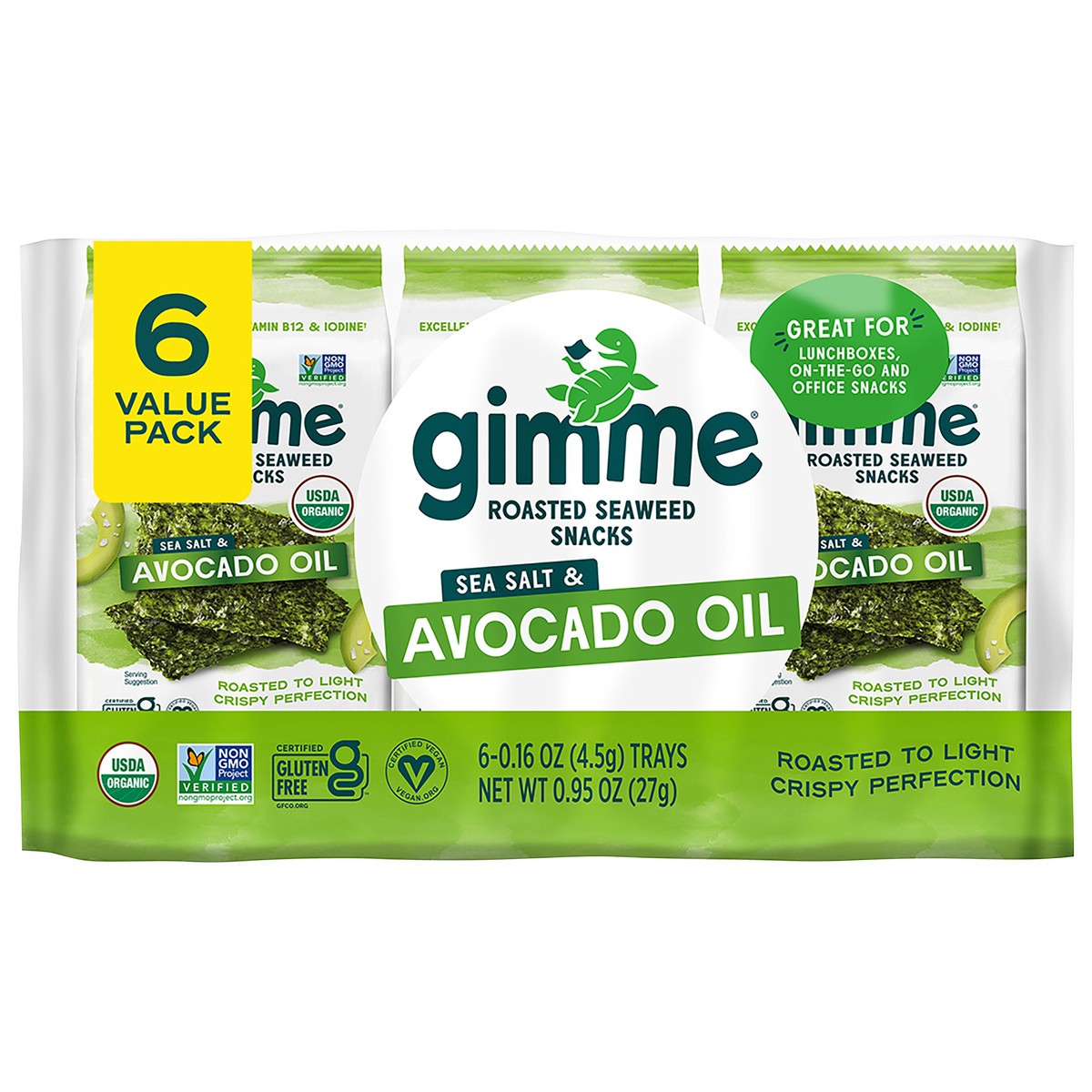 gimMe Organic Roasted Sea Salt & Avocado Oil Seaweed Snacks Value Pack 6 - 0.16 oz Trays