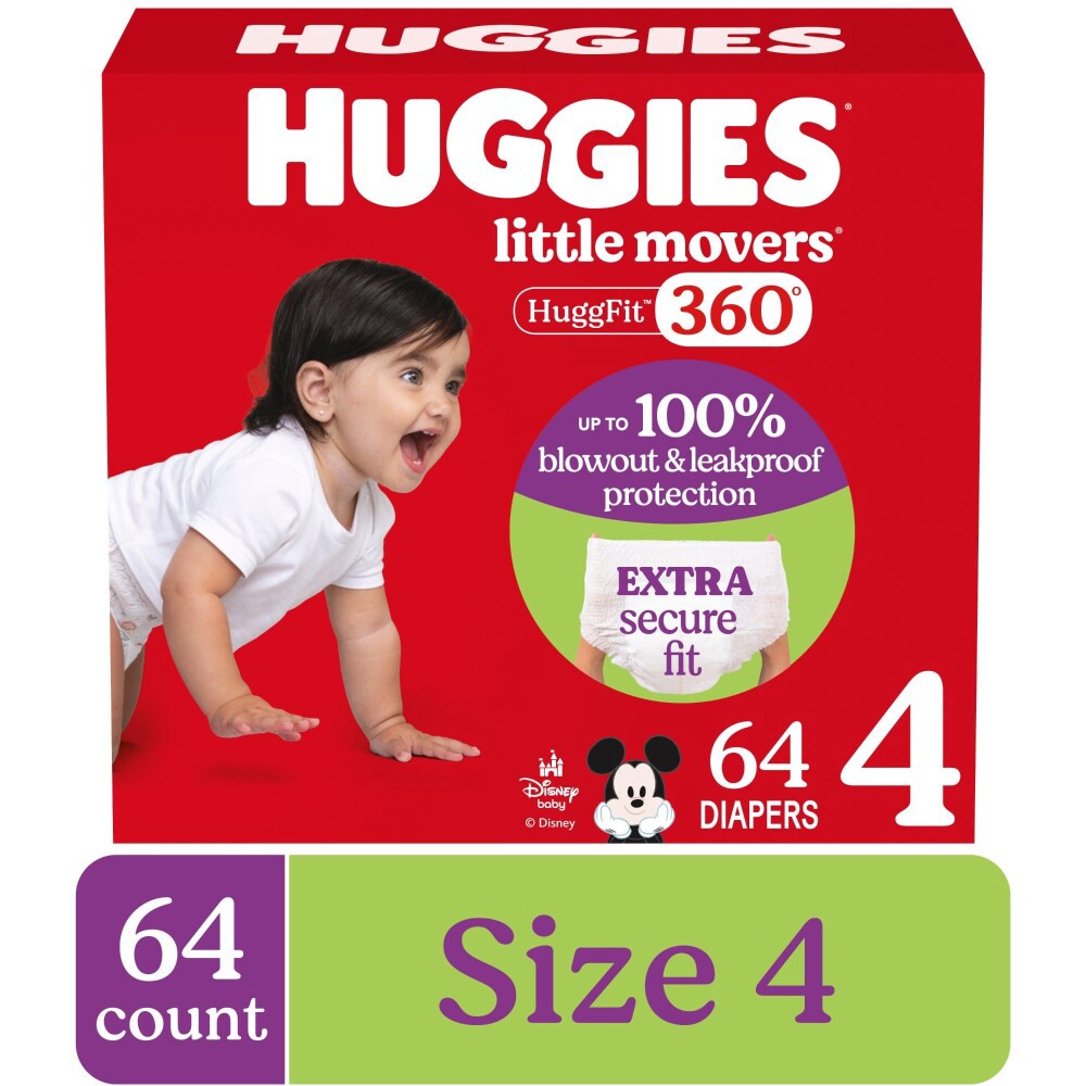 Huggies Little Movers HuggFit 360° Baby Diapers have 360° protection to help prevent leaks from any angle and an extra secure waistband designed to move with baby during play. HuggFit 360° slip-on dia…