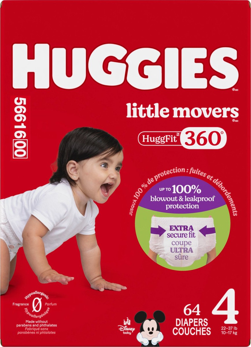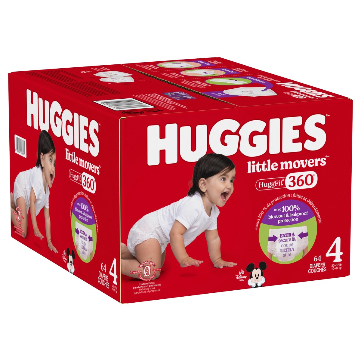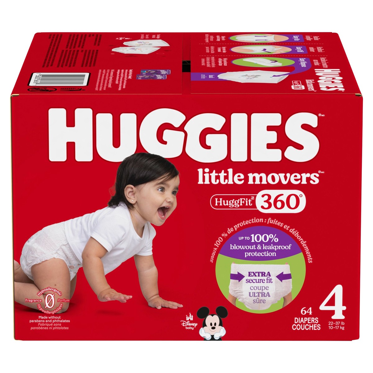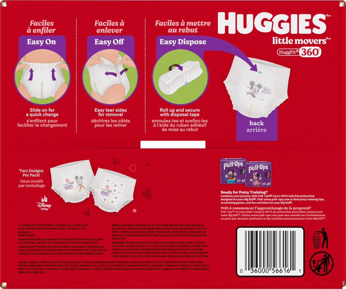 Huggies Little Movers HuggFit 360° Baby Diapers have 360° protection to help prevent leaks from any angle and an extra secure waistband designed to move with baby during play. HuggFit 360° slip-on dia…