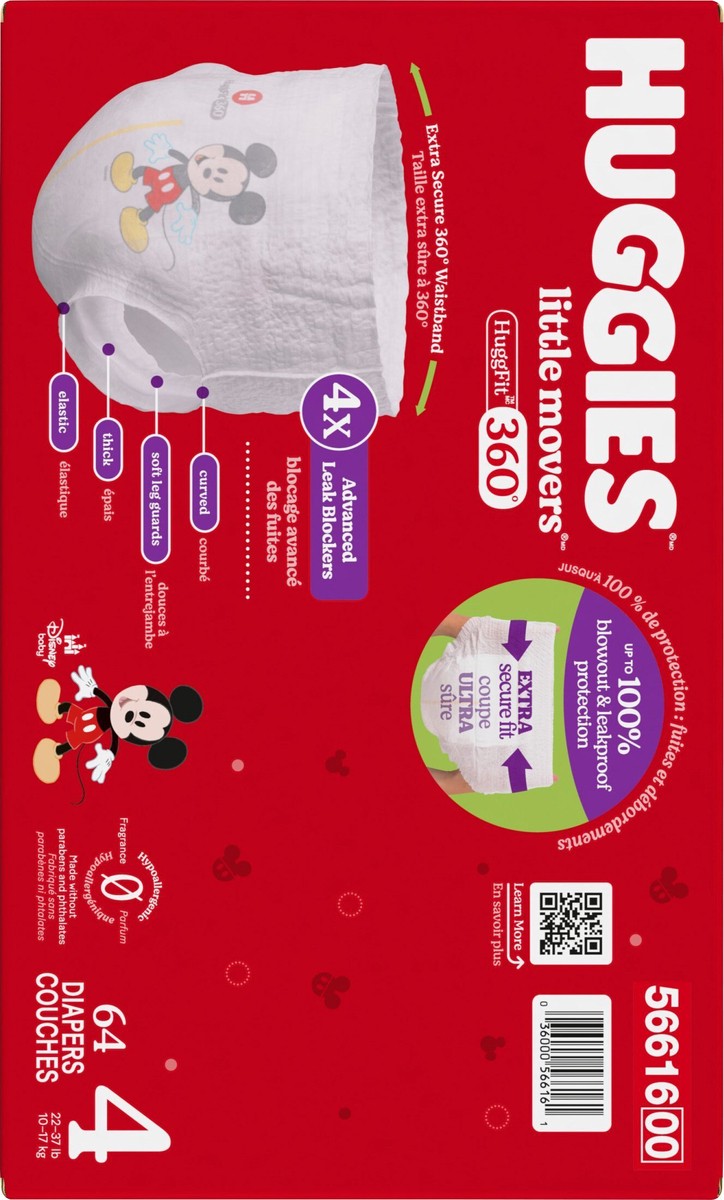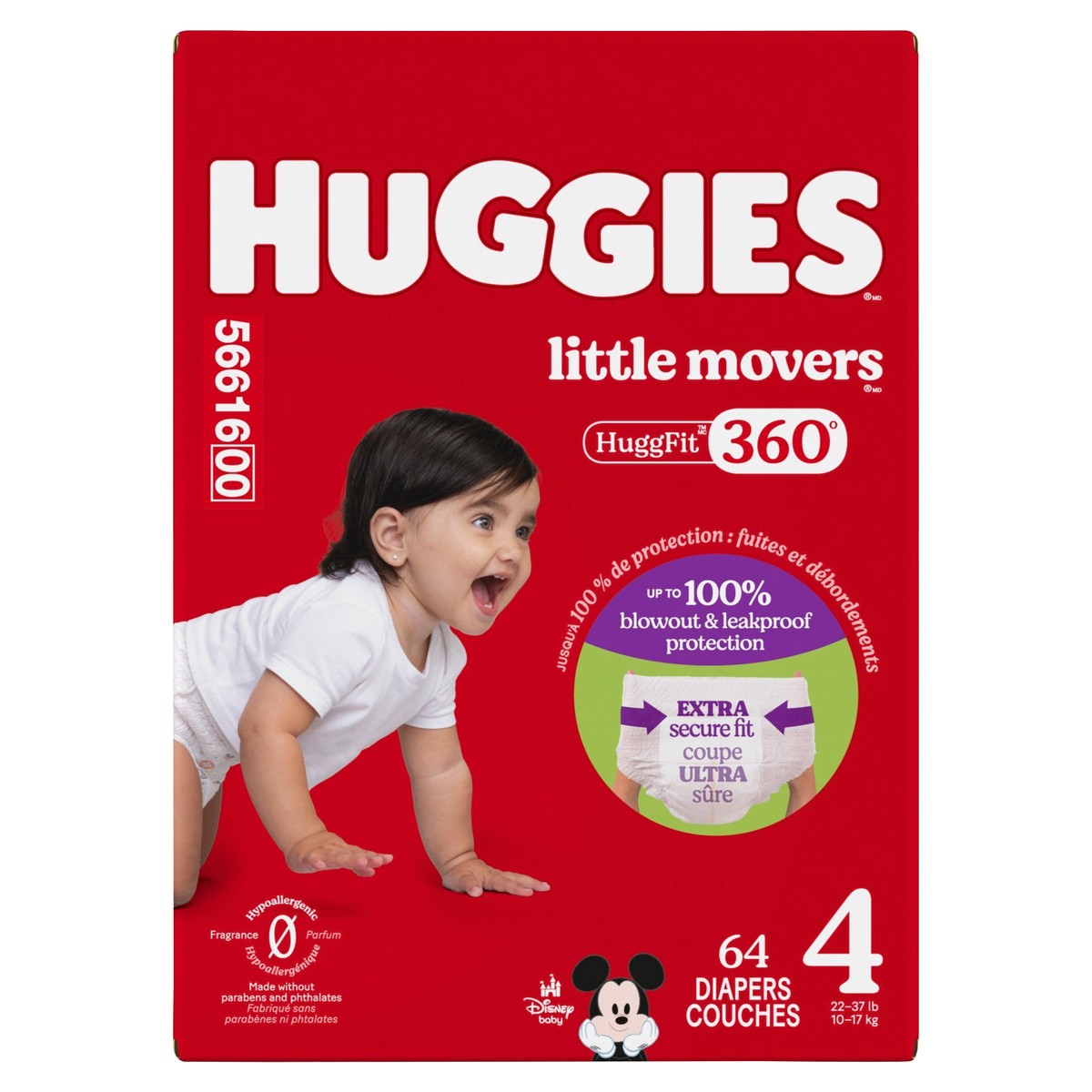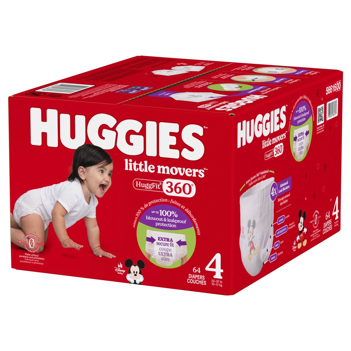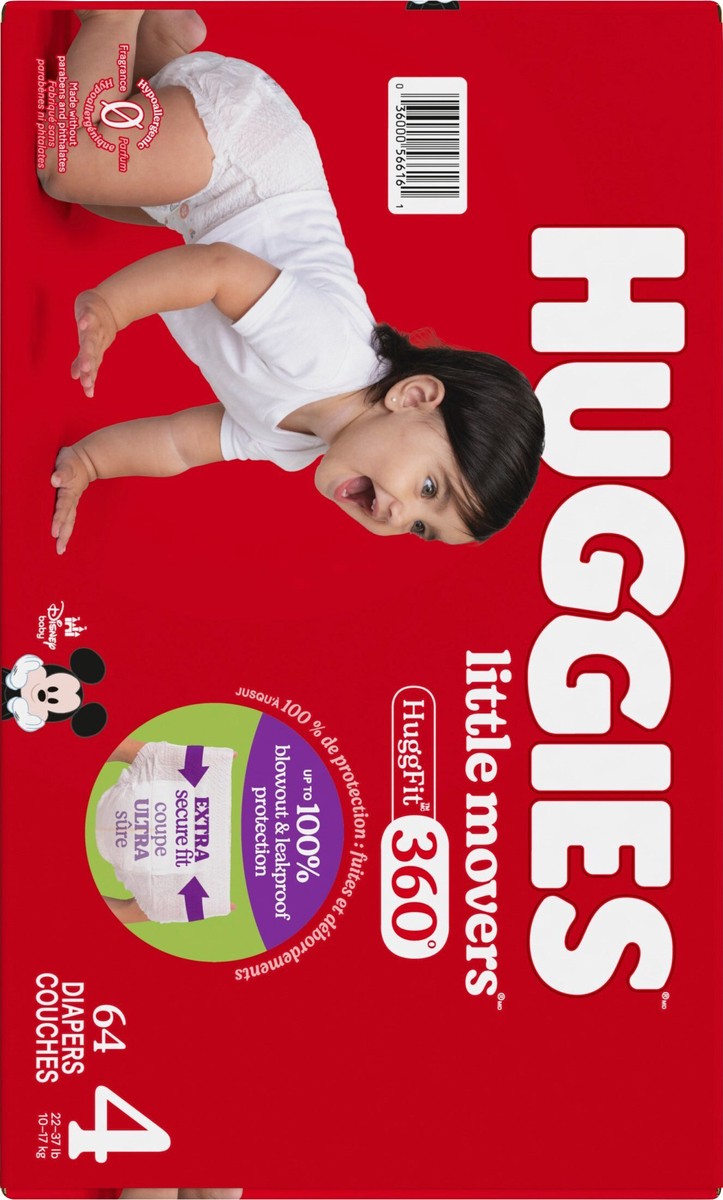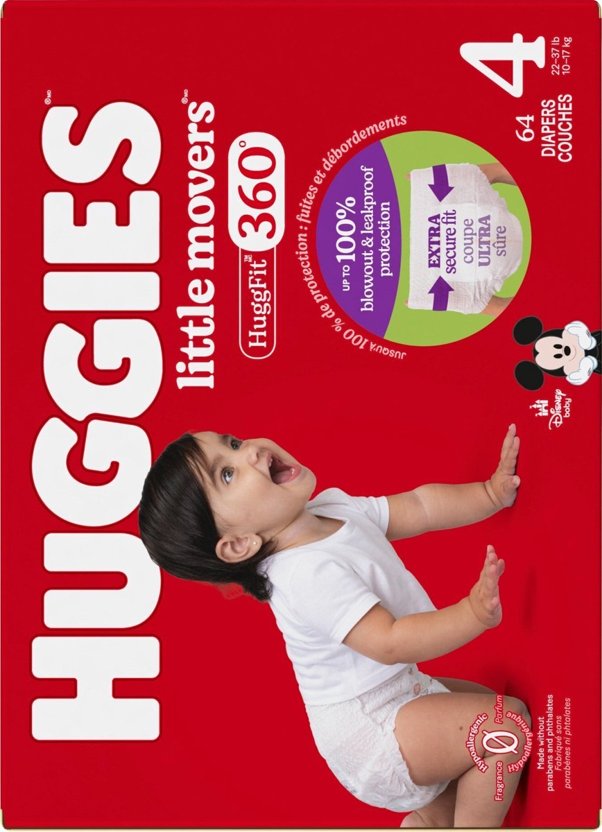 Huggies Little Movers HuggFit 360° Baby Diapers have 360° protection to help prevent leaks from any angle and an extra secure waistband designed to move with baby during play. HuggFit 360° slip-on dia…