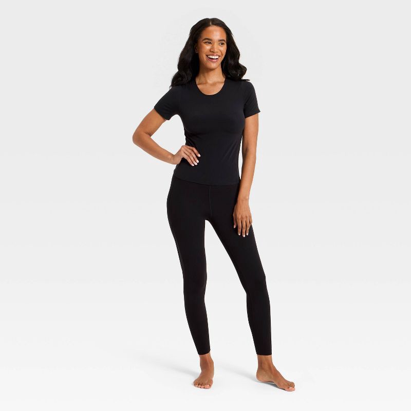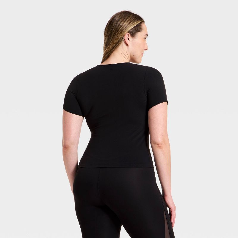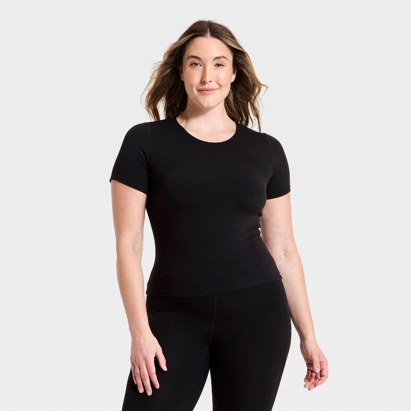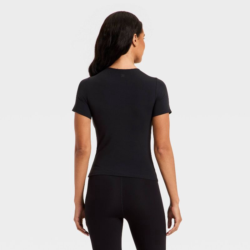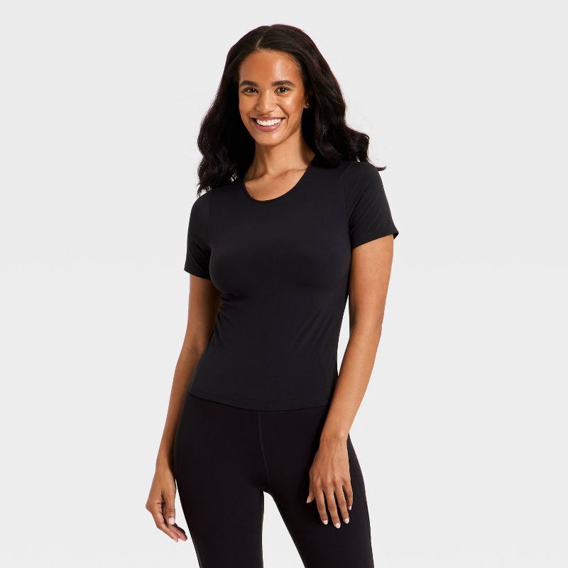Women's Everyday Soft Cropped Short Sleeve T-Shirt - All In Motion™ Black S: Moisture Wicking, Quick Dry, UPF 50+ Top