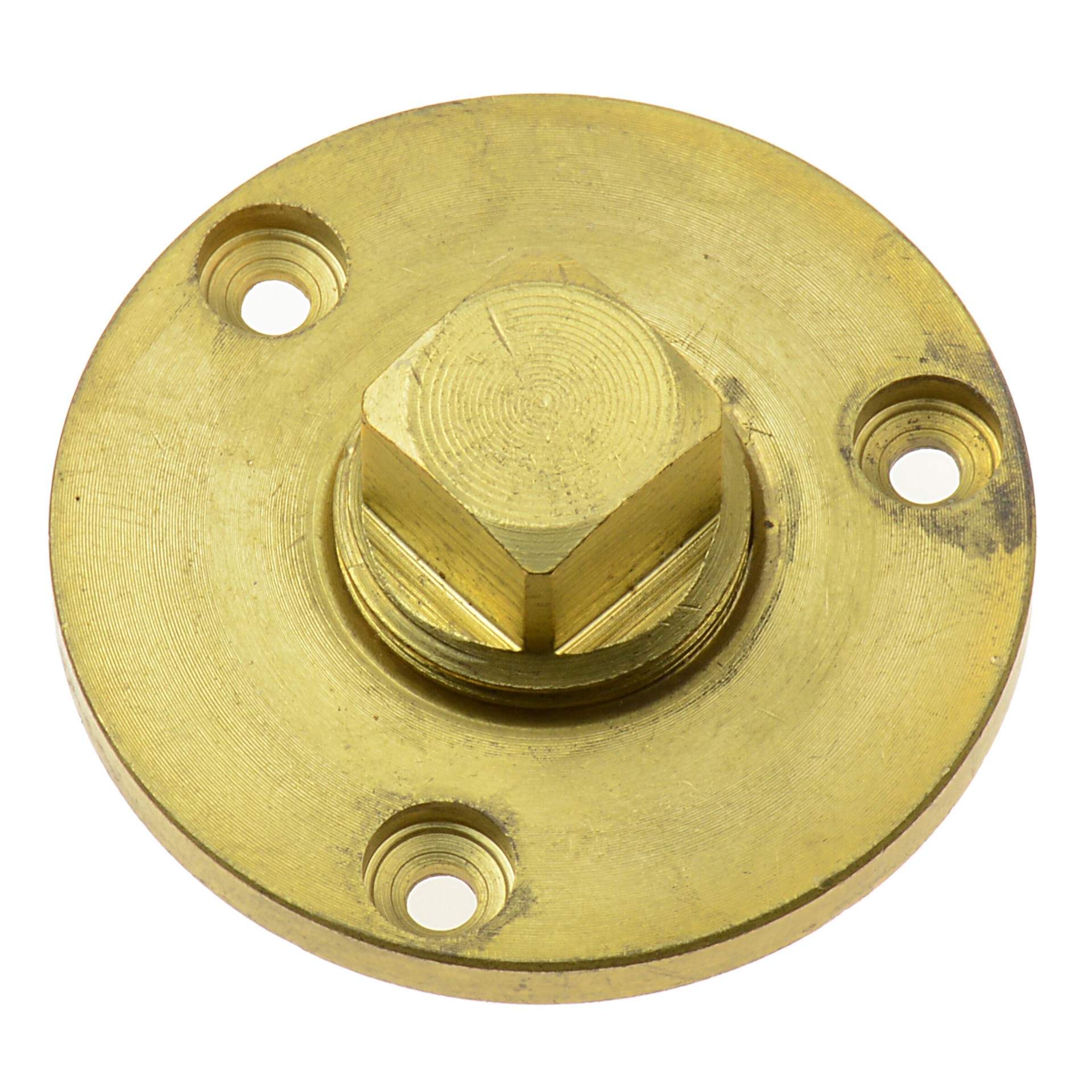 Garboard drain plug kit. Includes threaded brass flange & 1/2 inch NPT threaded brass plug. Tightens or loosens with 9/16 inch open end wrench. Fasteners sold separately.