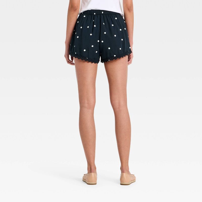 Women's Lace Trim Printed Fashion Pull-On Shorts - A New Day™ Black Polka Dots S