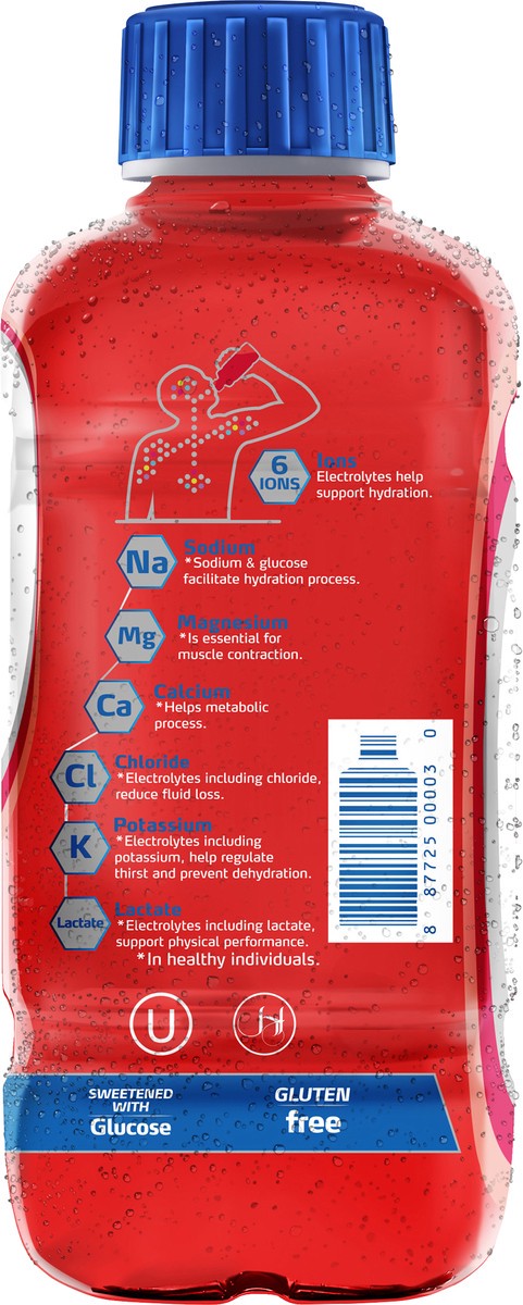 Water, Dextrose Monohydrate, Sodium Lactate, Potassium Chloride, Citric Acid, Natural Strawberry Flavor, Molasses, Magnesium Chloride, Calcium Chloride, Malic Acid, Steviol Glycosides, Salt, FD&C Red …