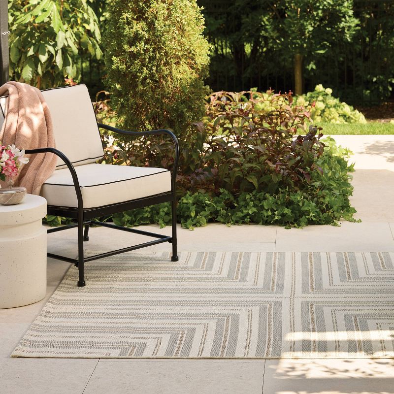 Threshold designed w/Studio McGee 5'x7' Pieced Striped Outdoor Patio Woven Area Rug Tan - Threshold™ designed with Studio McGee