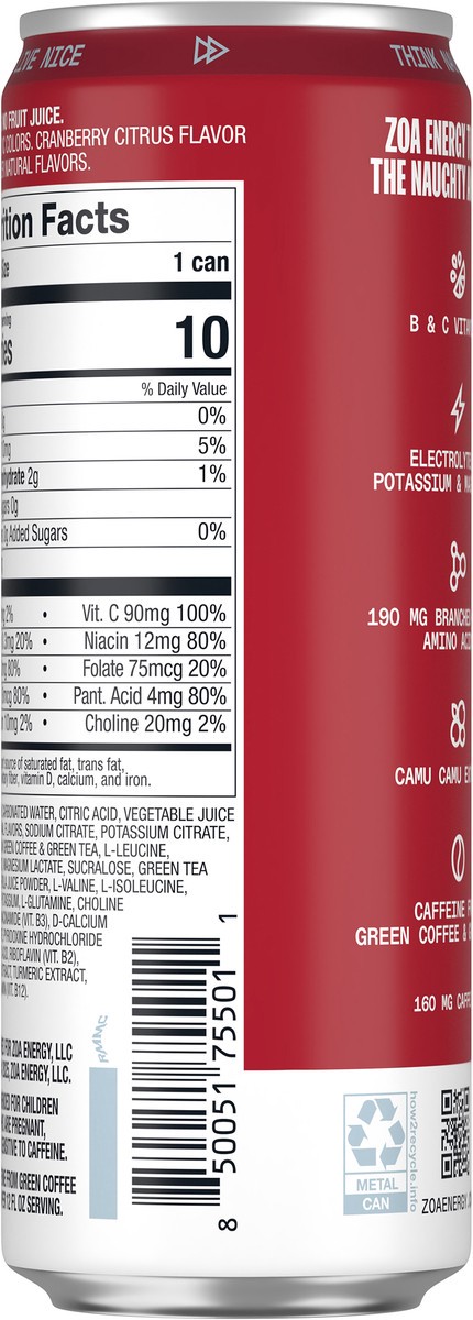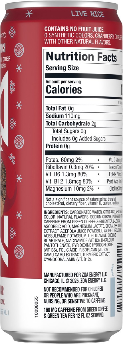 ZOA Zero Sugar Energy Drink - Dwanta's Holiday Punch, 12 oz
