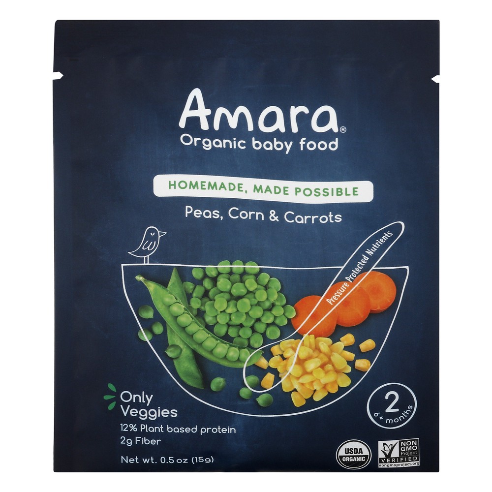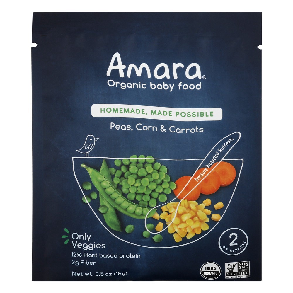 Just Organic Peas, Organic Corn, Organic Potato, Organic Carrots.
