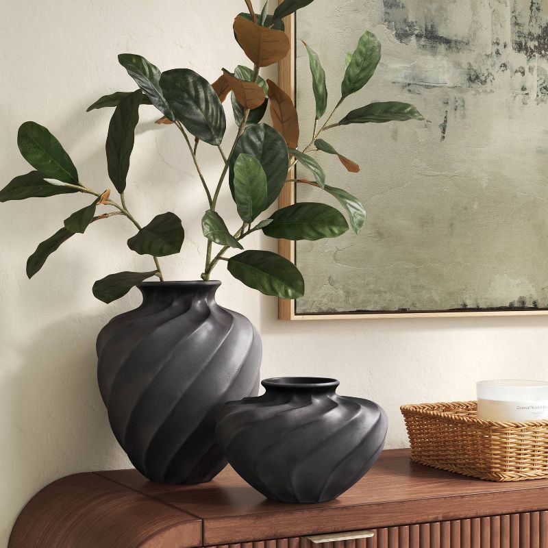 Make your home feel more inviting with this Twisted Ceramic Vase from Threshold™. Made of ceramic, this vase is designed in a black hue and boasts a twisted pattern for an elegant look. The ceramic va…