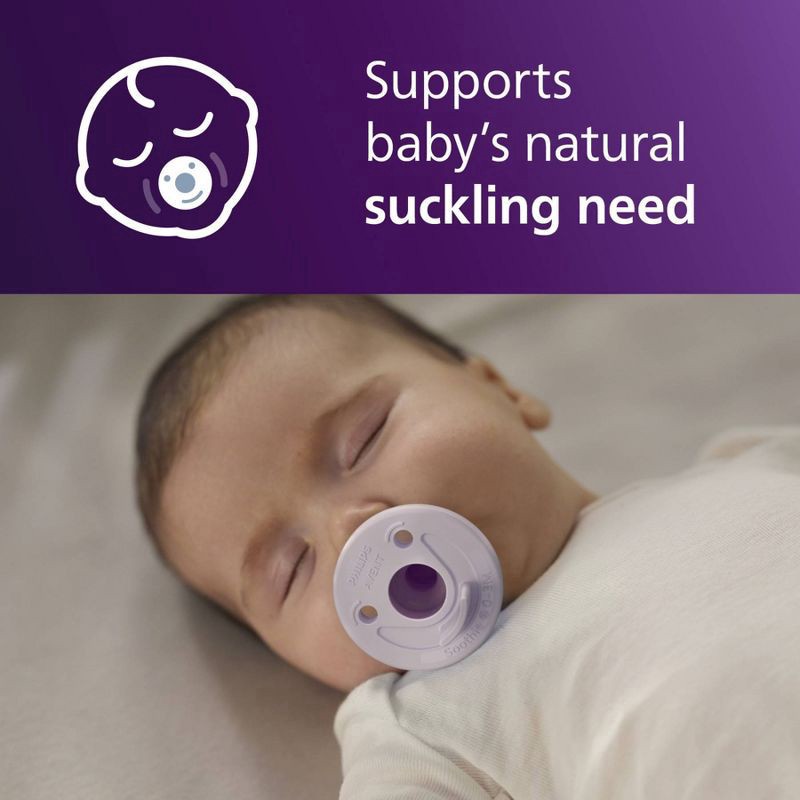 Philips Avent Soothie 0-3m, fresh lilac/pastel pink, 2 pack. The pacifier brand distributed in hospitals nationwide. Used by medical professionals to calm newborns. Orthodontic; respects the natural d…