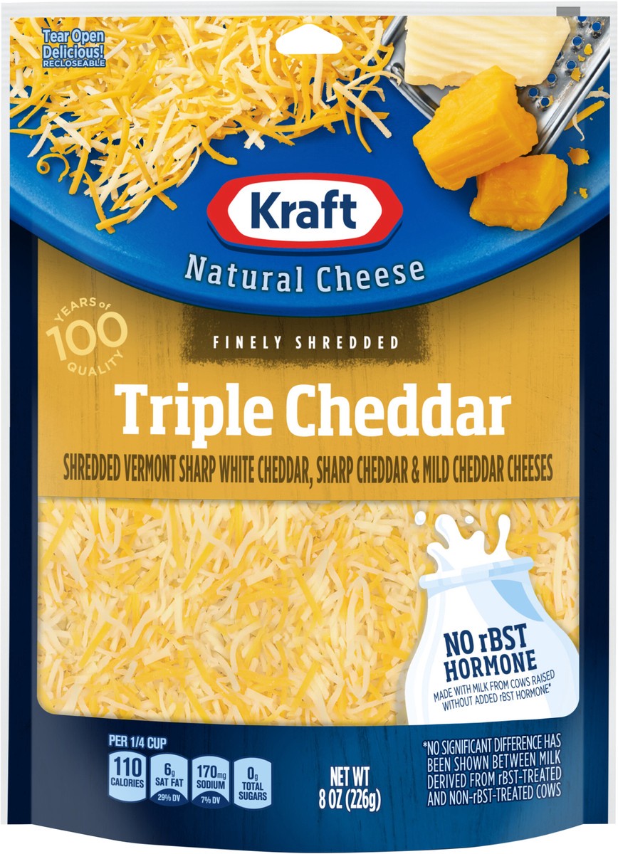 - Enhance your next meal with Kraft Finely Shredded Natural Triple Cheddar Shredded Cheese