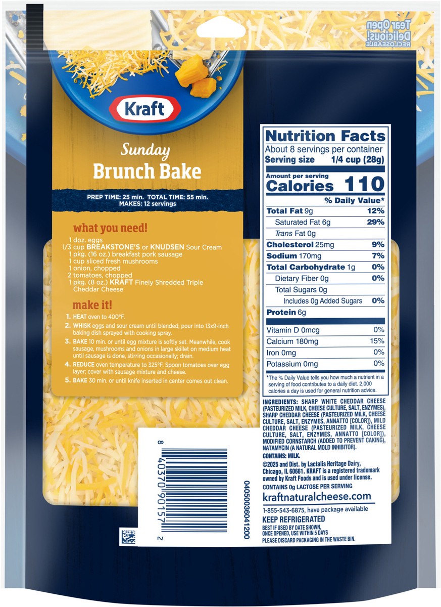 - Enhance your next meal with Kraft Finely Shredded Natural Triple Cheddar Shredded Cheese