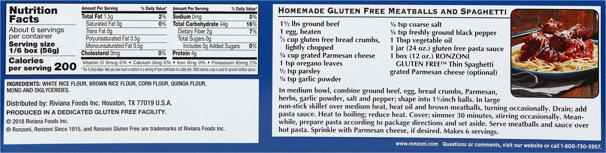 Ronzoni Gluten Free Thin Spaghetti, 12 oz, Non-GMO, Vegan Pasta