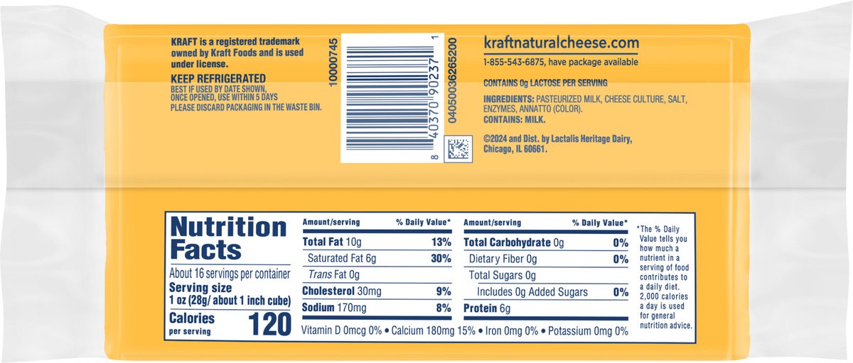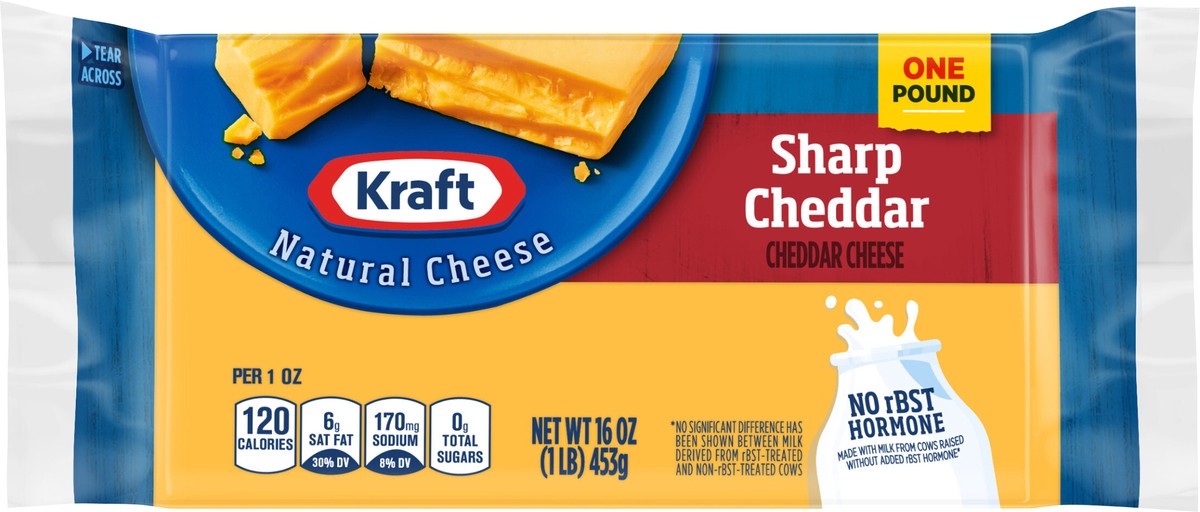 - One 1 lb Kraft Sharp Cheddar Cheese Block