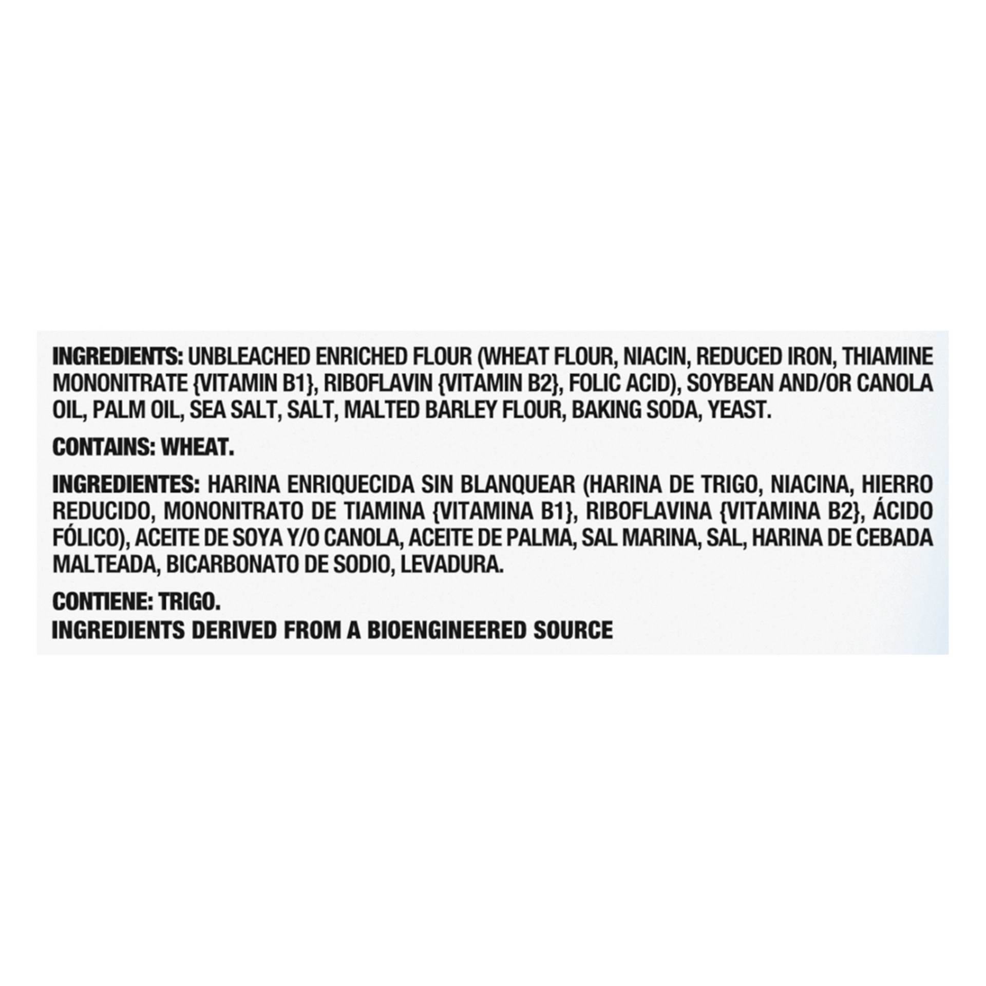 INGREDIENTS: UNBLEACHED ENRICHED FLOUR (WHEAT FLOUR, NIACIN, REDUCED IRON, THIAMINE MONONITRATE {VITAMIN B1}, RIBOFLAVIN {VITAMIN B2}, FOLIC ACID), SOYBEAN AND/OR CANOLA OIL, PALM OIL, SEA SALT, SALT,…