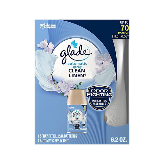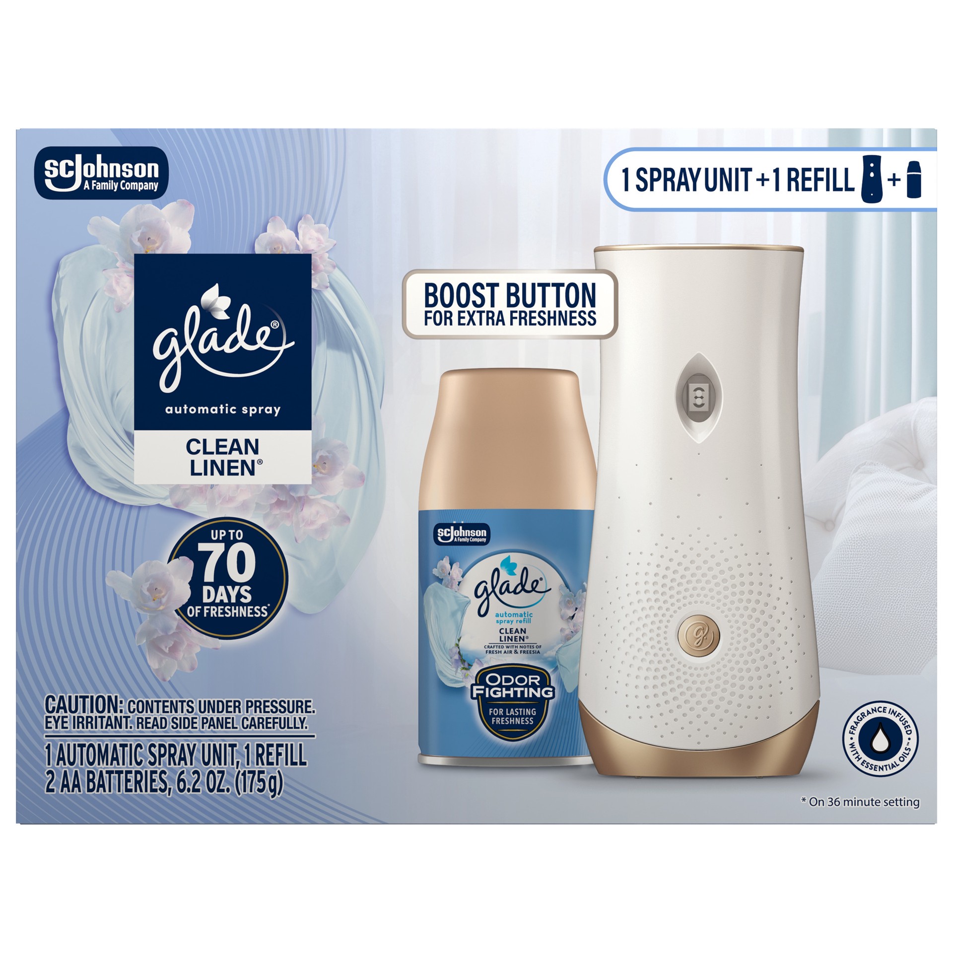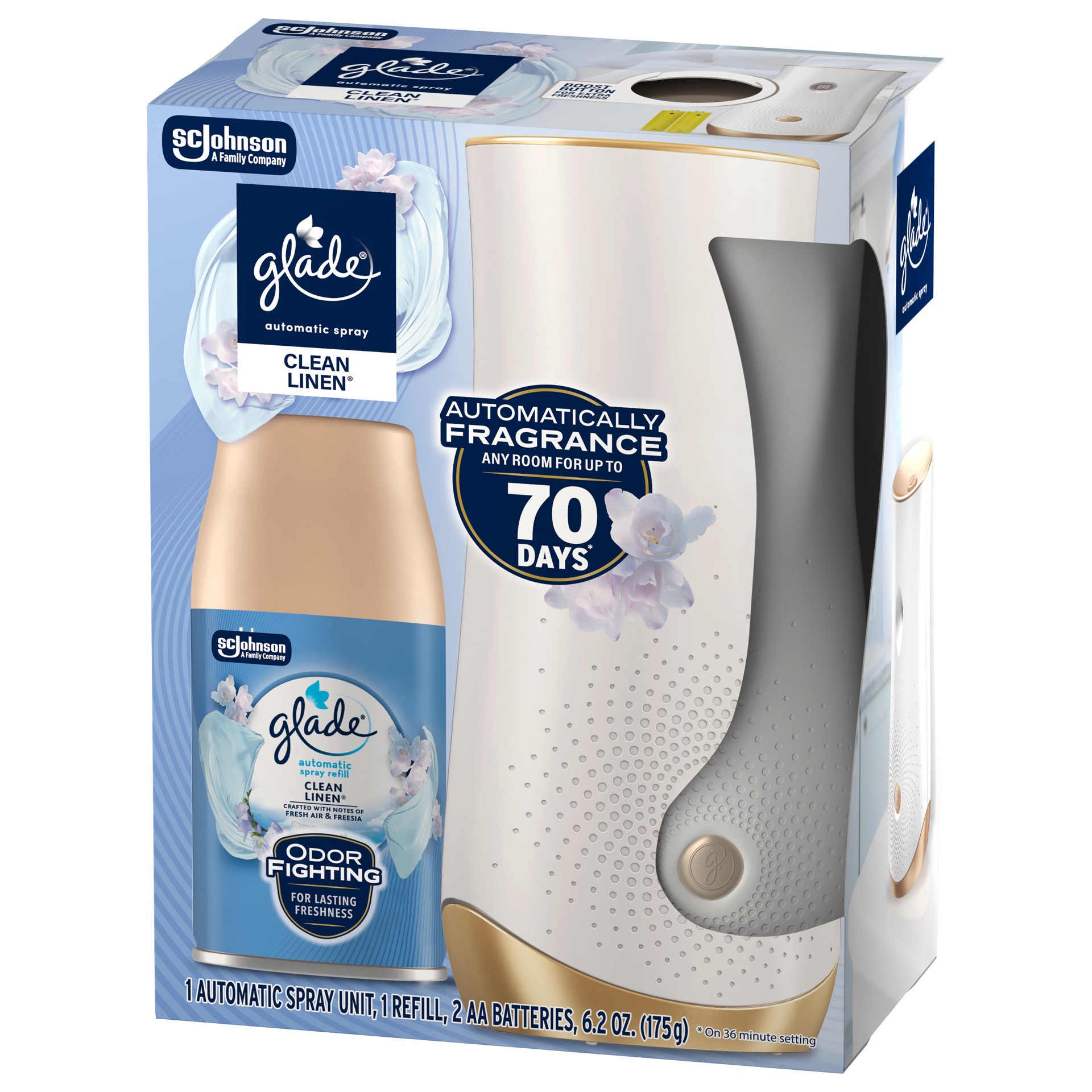 Keep it clean with air with our complex blend of Glade Clean Linen Automatic Spray Holder + Automatic Spray Refill. Decorate the air with this scent diffuser with notes of crisp air, fresh laundry, an…