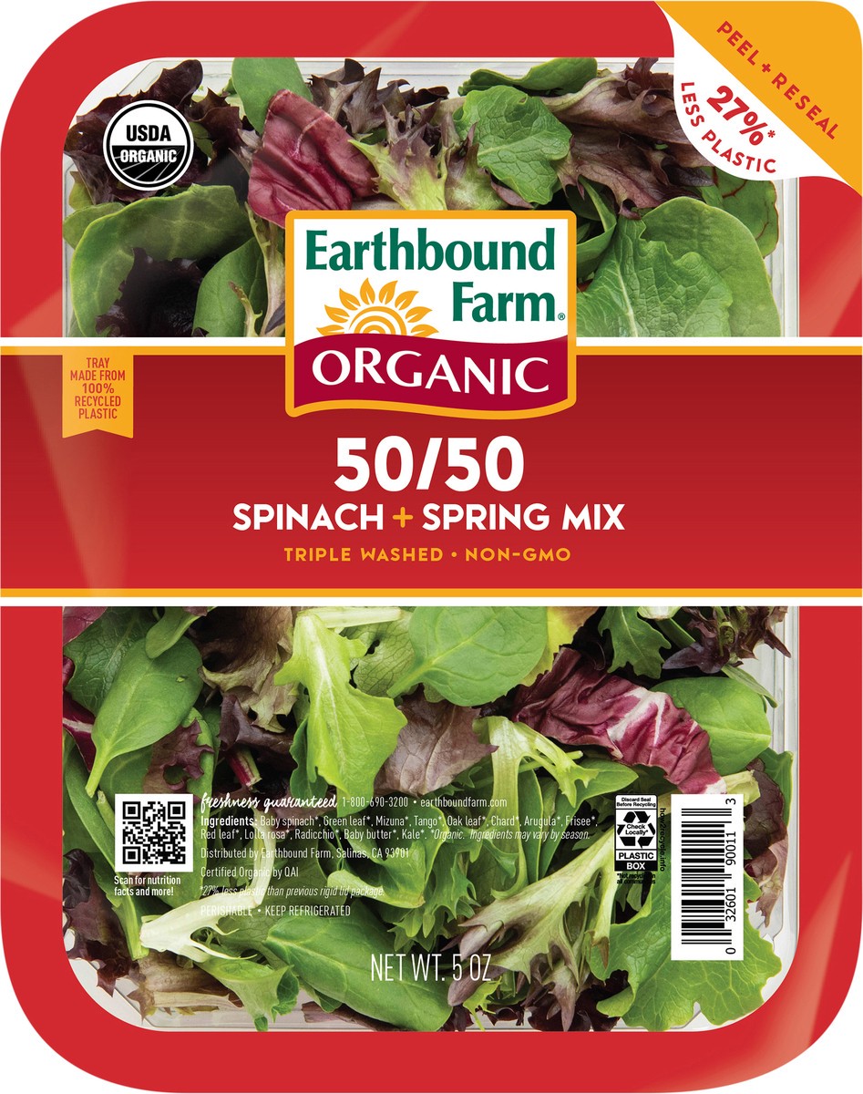 Earthbound Farm Organic Spinach + Spring Mix, 50/50, 5 oz
