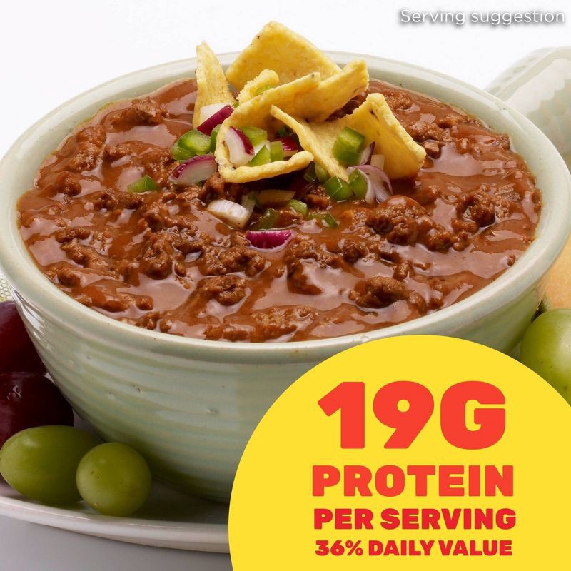 - HORMEL Chili has 19 g of protein (36% daily value) per serving; No artificial ingredients added