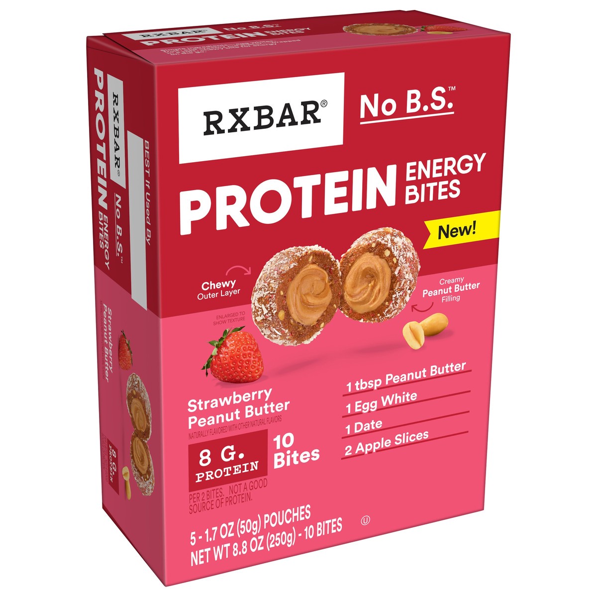 RXBAR Protein Energy Bites, Gluten Free Protein Balls, Strawberry Peanut Butter, 8.8oz Box, 10 Bites
