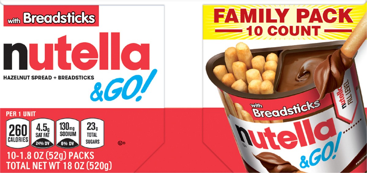 Nutella & Go! Hazelnut And Cocoa Spread With Breadsticks Snack Cups 10 Pack - 1.8 Oz Each