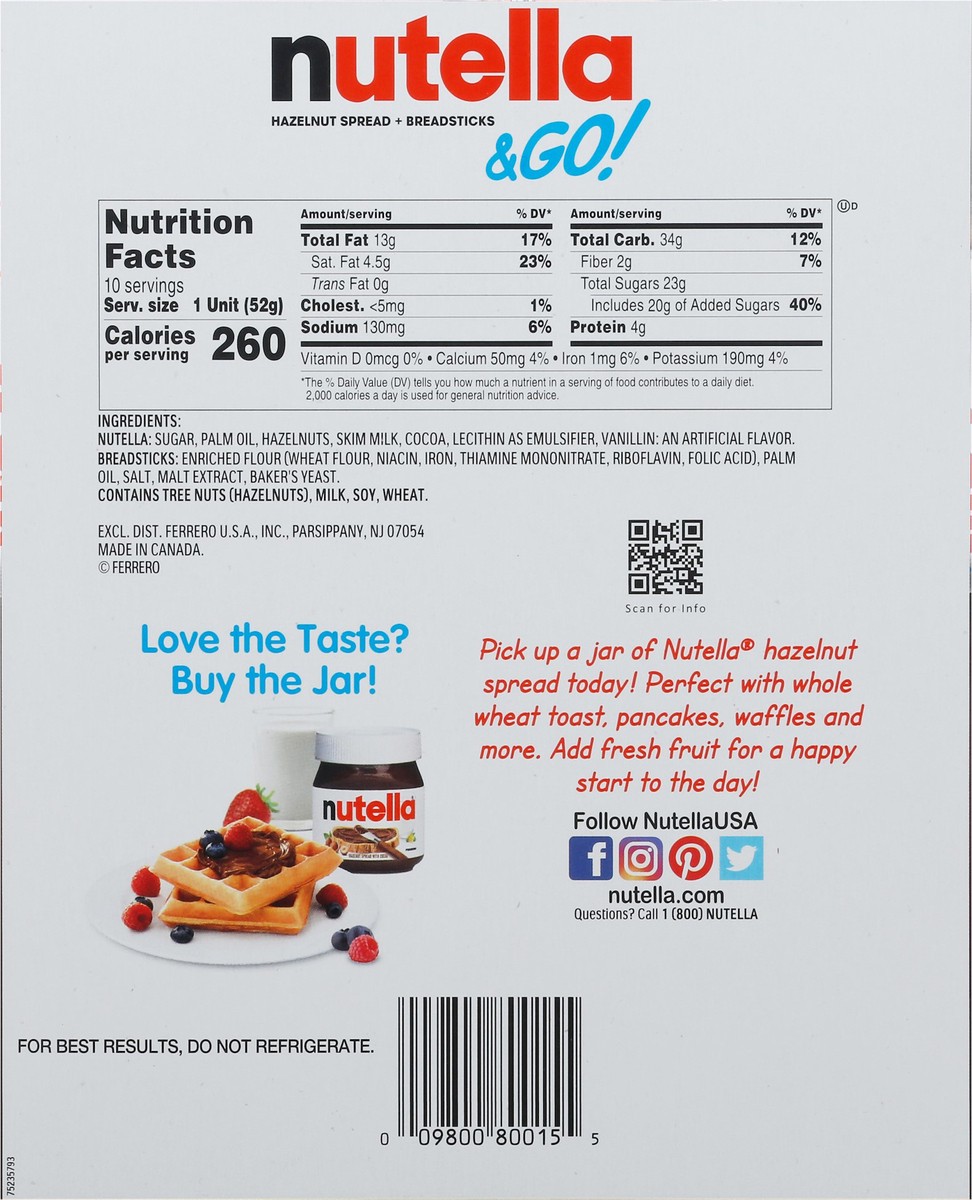 Nutella & Go! Hazelnut And Cocoa Spread With Breadsticks Snack Cups 10 Pack - 1.8 Oz Each