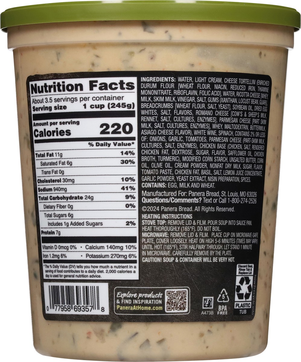 Panera Bread Tuscan Style Tortellini Soup Cup - 32 Oz