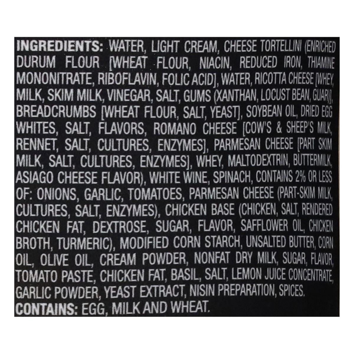 Water, Light Cream, Cheese Tortellini (Enriched Durum Flour [Wheat, Flour, Niacin, Reduced Iron, Thiamine Mononitrate, Riboflavin, Folic Acid], Water, Ricotta Cheese [Whey, Milk, Skim Milk, Vinegar, S…