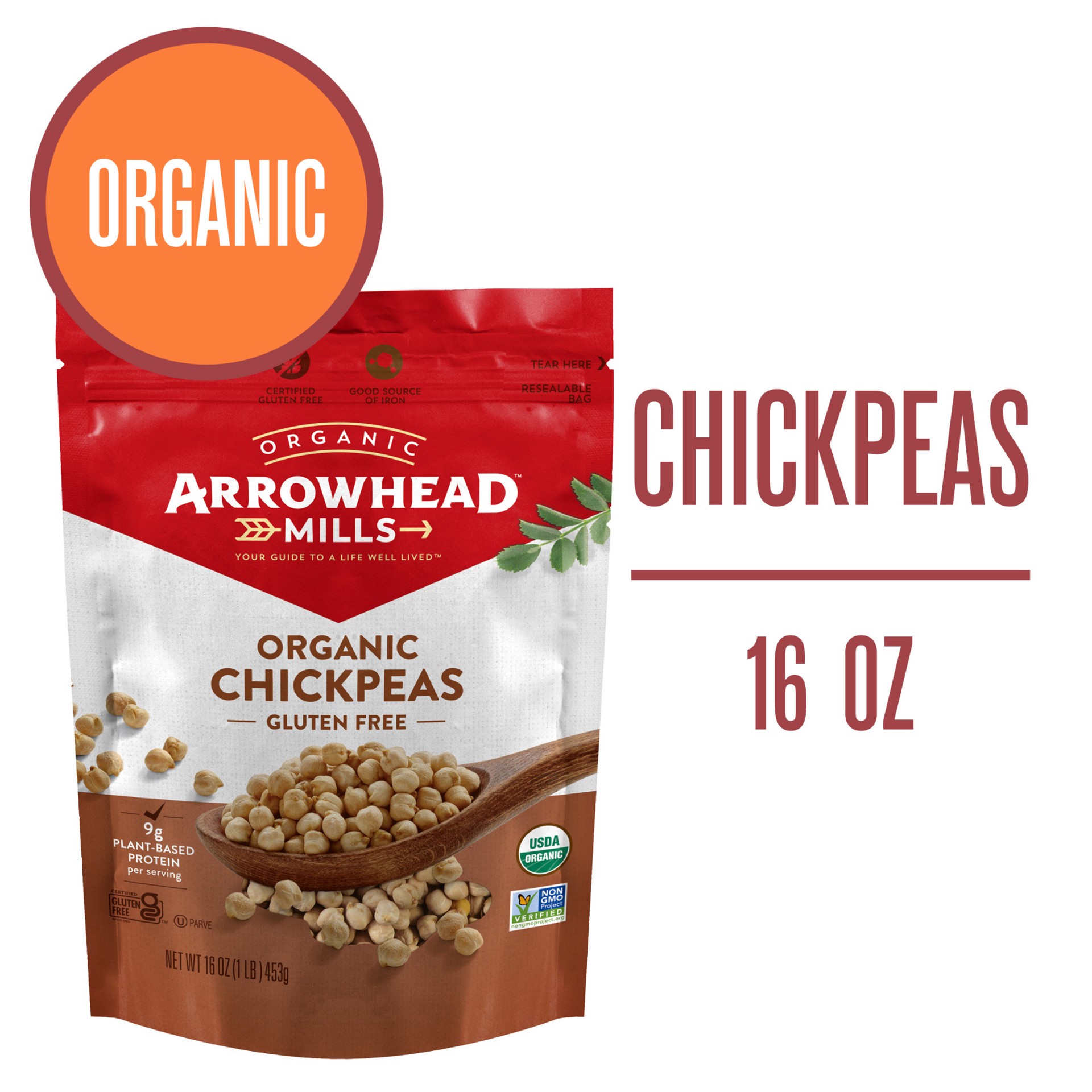 Create delicious main entrees, soups and side dishes with Arrowhead Mills Organic Chickpeas. Also known as garbanzo beans, these non GMO, organic chickpeas have 9 grams of protein and 8 grams of fiber…
