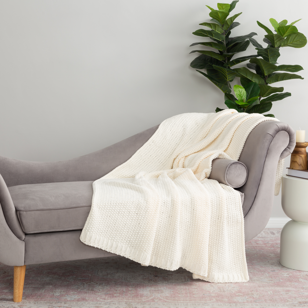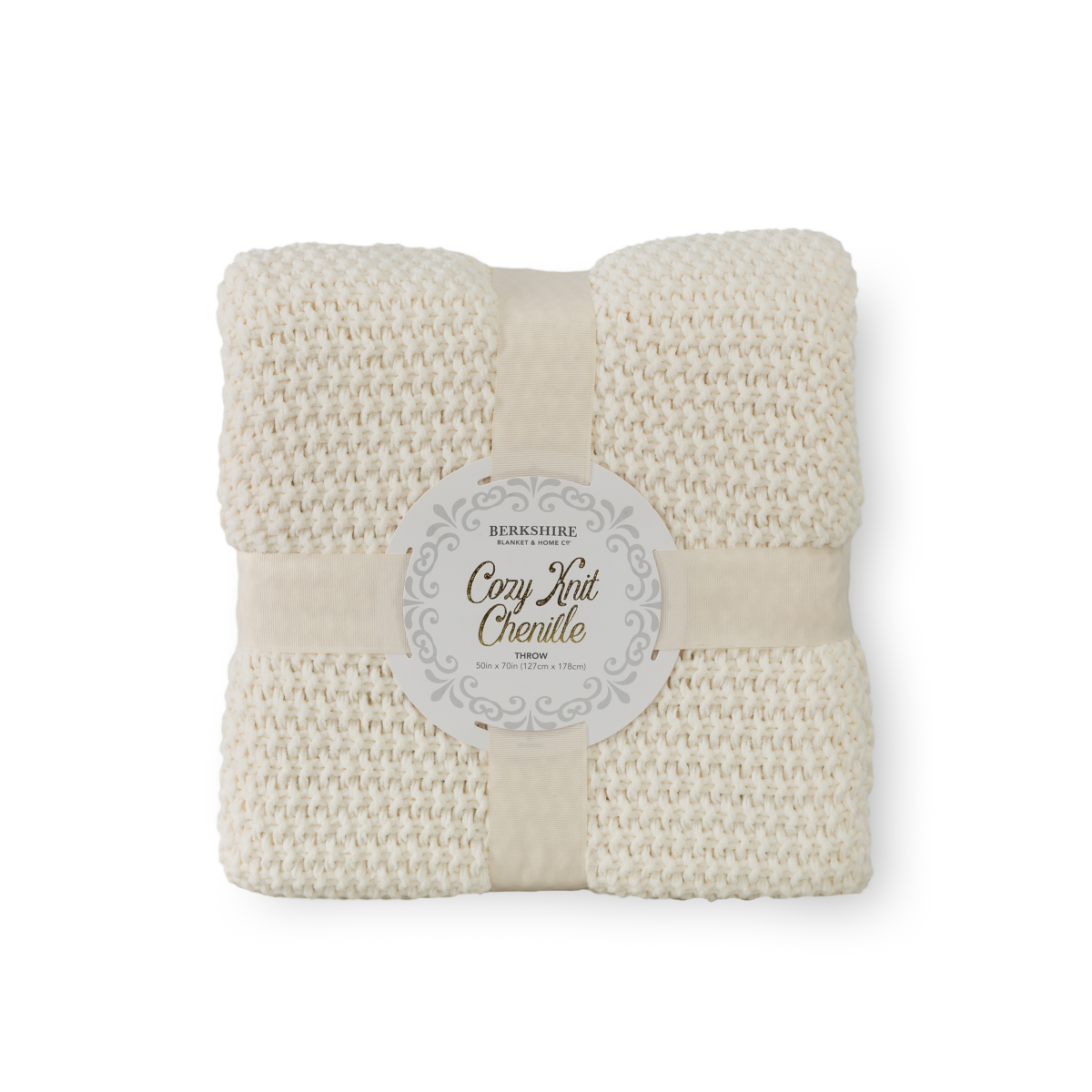 BERKSHIRE BLANKET Berkshire Seed Knit Chenille Throw Cream, 50 in x 70 in