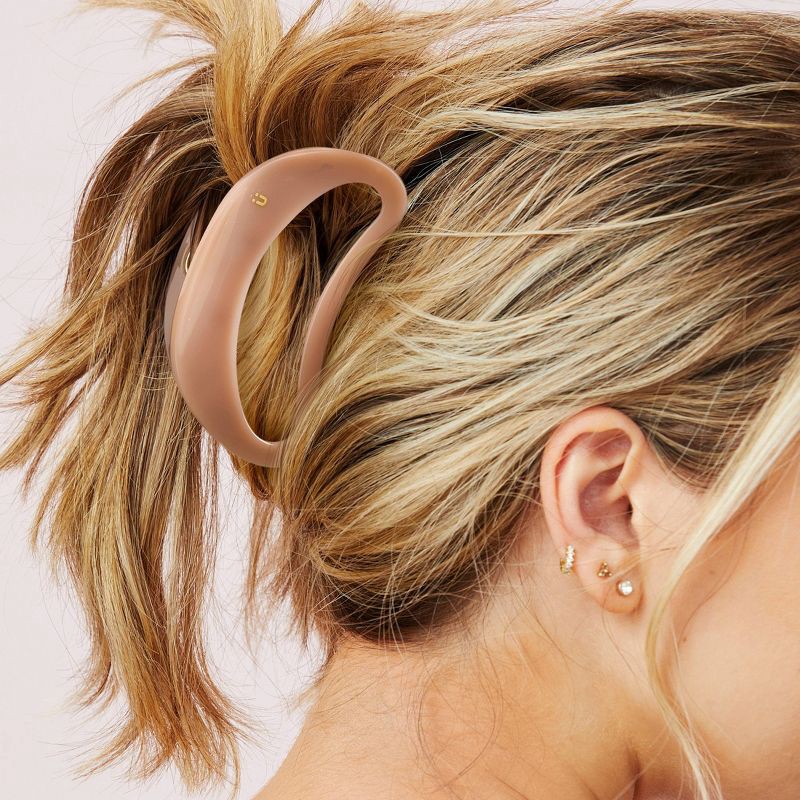 Discover the beauty of understated elegance with a contoured clip that secures your style. Crafted in a soft nude tone, its curved silhouette and cutout center create a contemporary look. A luxe gold-…
