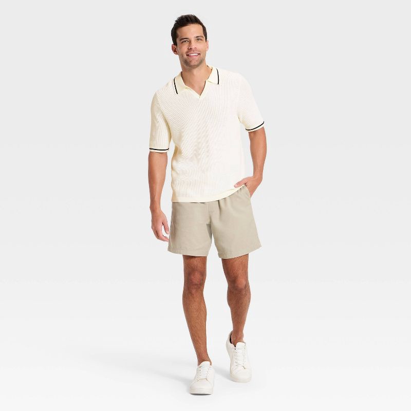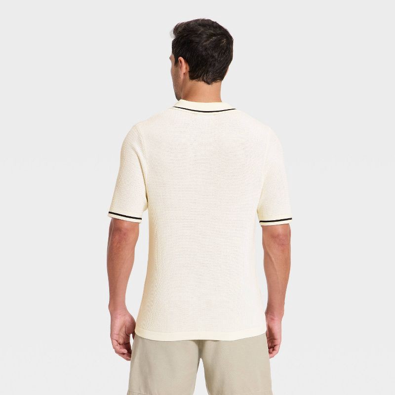 Men's Openwork Knit Johnny Collar Polo Sweater - Goodfellow & Co™ Cream L